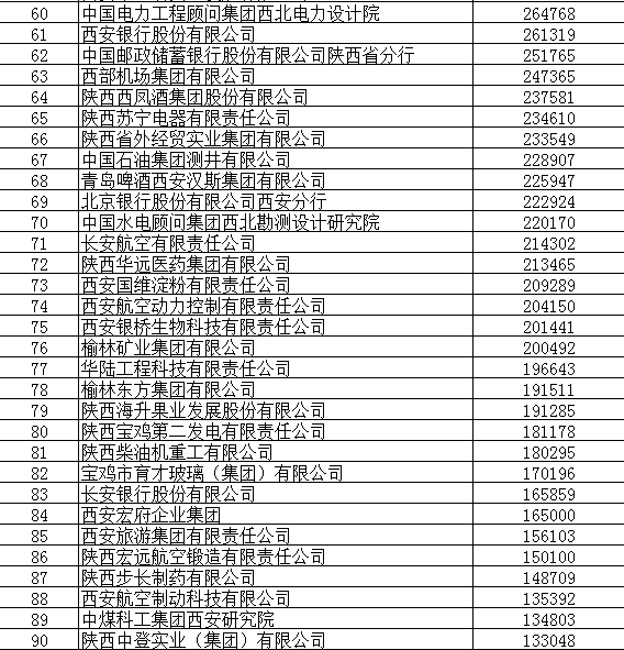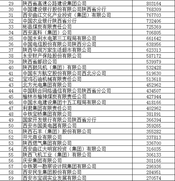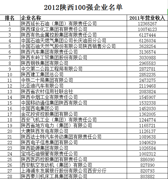 2012陕西100强企业名单