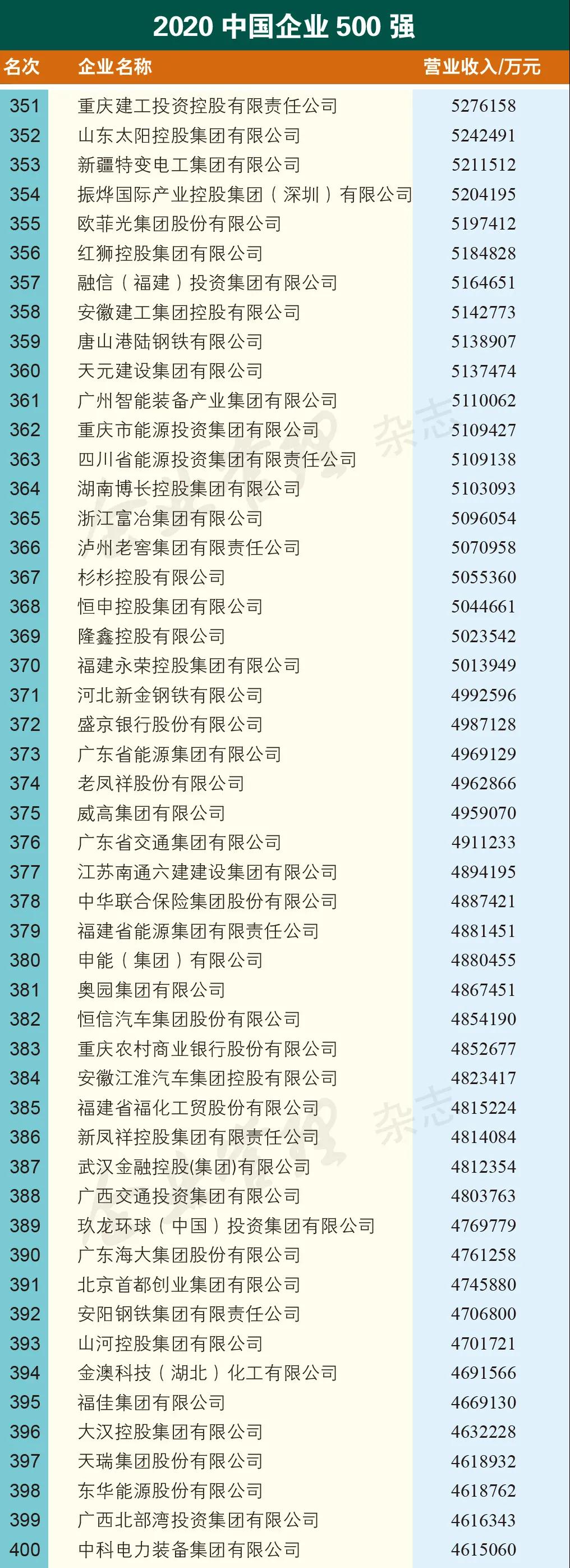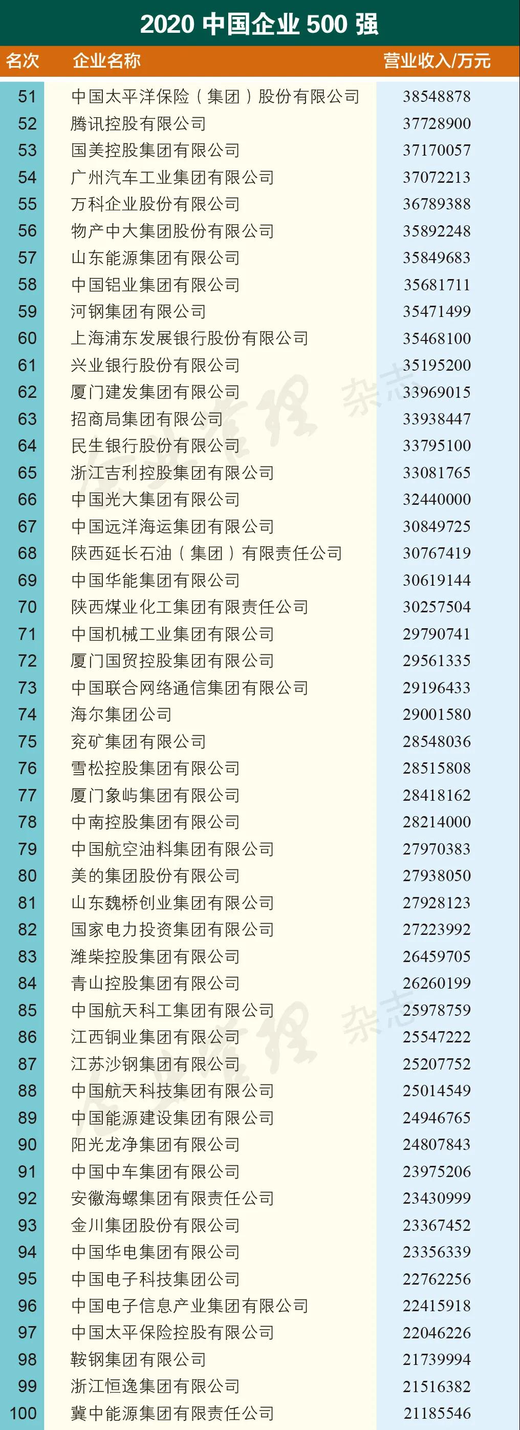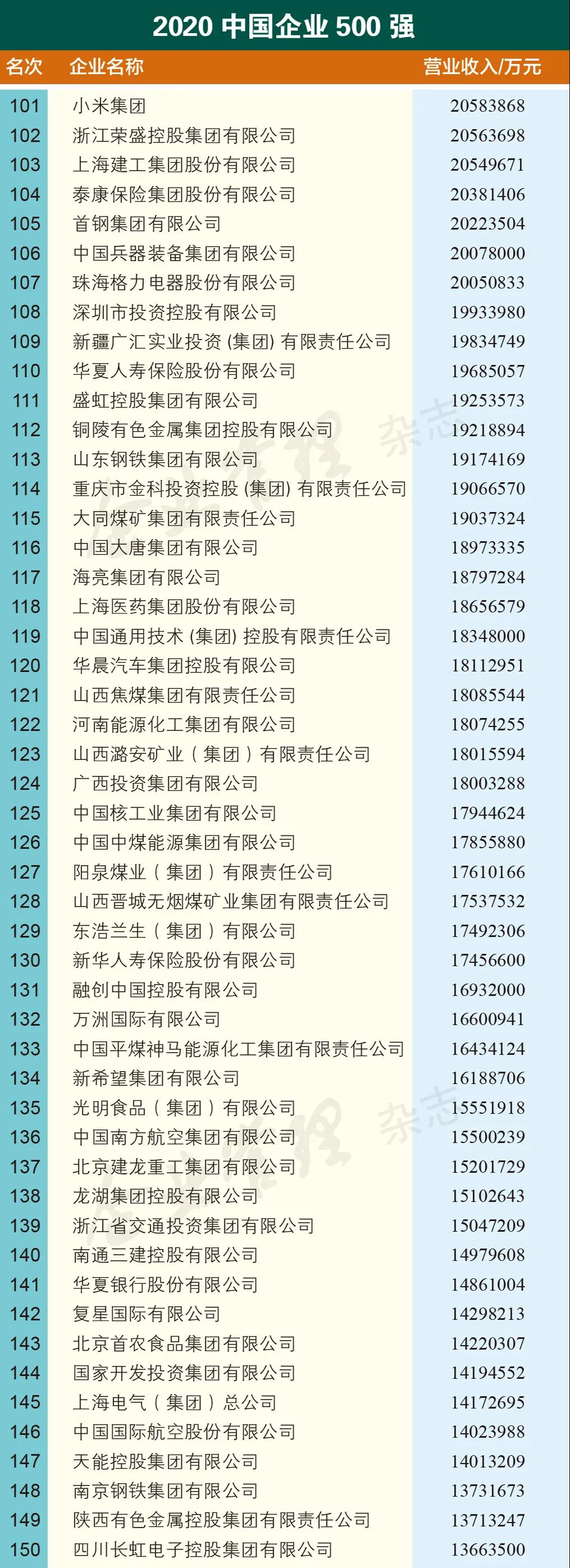9月28日,在2020中国500强企业高峰论坛上,中国企业联合会、中国企业家协会连续第19次向社会发布“中国企业500强”榜单。