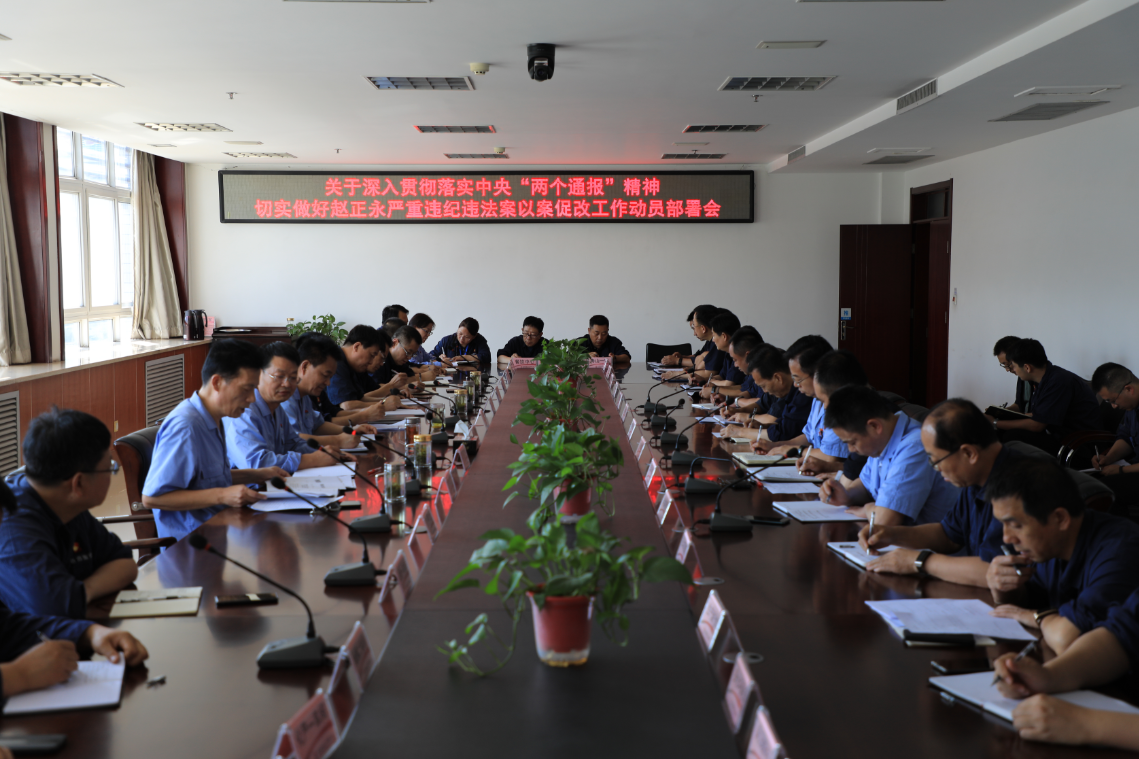 7月20日上午,陕焦公司召开关于深人贯彻落实中央“两个通报”精神切实做好赵正永严重违纪违法案以案促改工作动员部署会议,该公司在家领导班子成员,各单位主要负责人等40余人参加会议。公司党委副书记、总经理雷宏春主持会议。