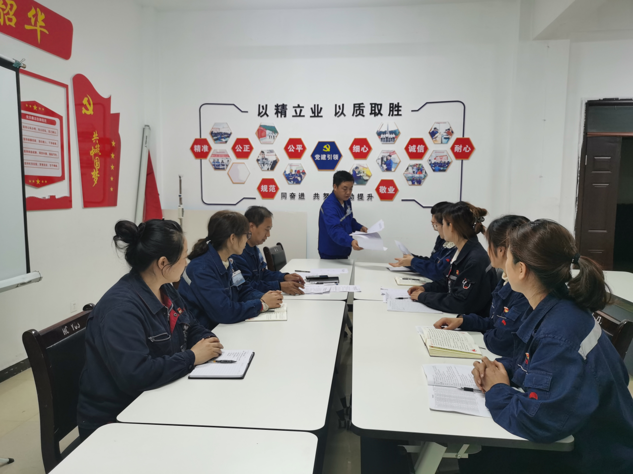 包联 + 学习教育。“我们对现场设备及消防应急设施一定要勤检查,做到心中有数……”乔晓亮在班前会上说。“‘临时包联’不能让问洁萍同志所在的班组退步”是包联党员乔晓亮给自己定的包联底线。他积极发挥“联系、宣传、服务”作用,持续深化党的理论学习,在学透学实后,利用班前班后会对班组成员进行学习教育,通过宣讲“四史”精神、传达公司各项制度、强调安全环保态势、叮嘱季节变化预防感冒等举措,消除思想不稳定、安全环保意识薄弱、缺乏大局观的“思想隐患”。