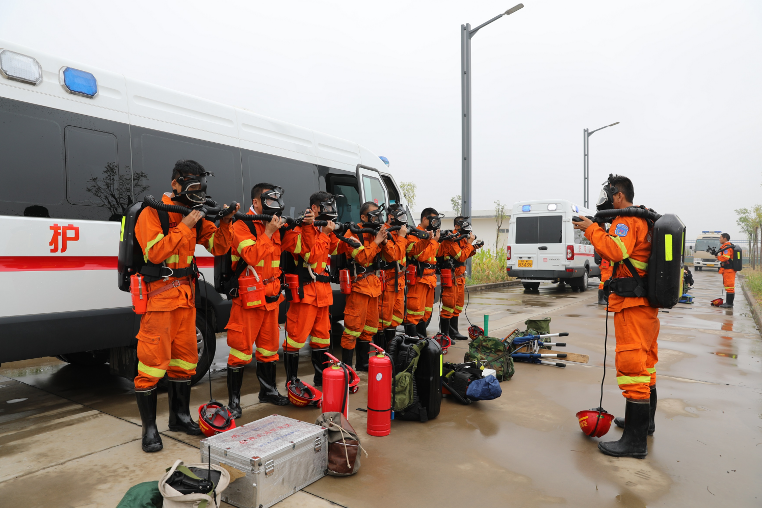 “张世龙:两小时氧气呼吸器正确佩用,9秒17;正压氧气呼吸器更换氧气瓶,28秒27;蒙眼苏生器准备,26秒17。”