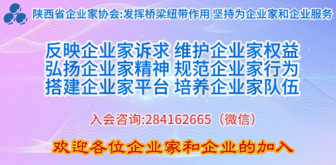 陕西企协宗旨:发挥桥梁纽带作用,坚持为企业家和企业服务。