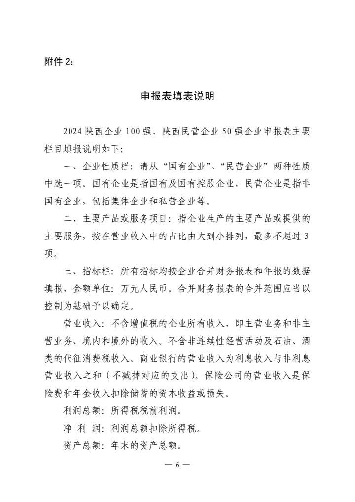 附关于申报2024陕西企业100强及民营企业50强的通知PDF版:相关附件下载