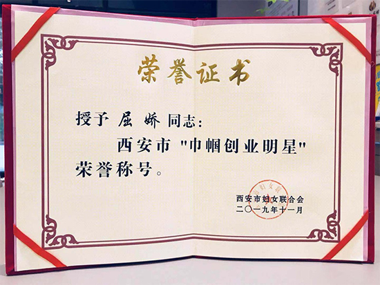 热烈祝贺 雅兰营销总经理屈娇荣获 西安市“巾帼创业明星”荣誉称号 荣誉证书 11月22日,西安市妇联召开了西安市城乡妇女岗位建功先进集体(个人)表彰大会。对“西安市城乡妇女岗位建功先进集体、先进个人”进行了表彰,陕西雅兰寝饰用品有限公司总经理屈娇女士荣获“西安市巾帼创业明星”荣誉称号。 大会现场 屈娇作为一名年轻的创业者、不仅不断创新思维和超前的意识,为企业提质增效,持续发展做出了突出贡献,还坚持践行雅兰纺织集团“回报社会、服务更多人群”的企业使命,积极带领团队担负企业的社会责任。并取得了显著成效。作为巾帼志愿者雅兰服务队队长的她,积极带领公司管理层及广大员工,持续10年之久、发起资助“红凤工程”贫困女大学生100余名完成学业。 响应国家精准扶贫的号召,体现佛陀慈悲为怀的本愿,在屈娇总经理带领下,联合广仁寺供养社会流浪人100多位,为社会减轻负担,促进了西安市稳定的社会秩序。 图为广仁寺仁软上师为屈娇总经理赠送仁心资助荣誉奖牌 10年来,在屈娇总经理带领下,集团管理层及广大员工,每人每月从工资中节约出部分资金,资助红凤工程贫困女大学生完成学业。发扬中华民族传统美德,传承爰、温暖他人。 编辑:张家赫