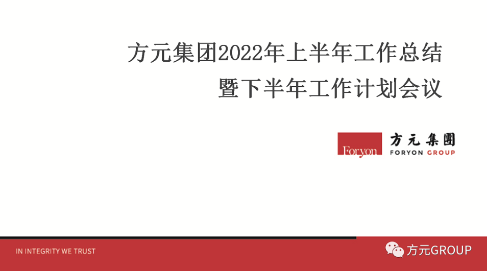 星霜荏苒,居诸不息。2022年是方元集团第二个十年的开局之年,也是集团三年战略规划的收官之年,转眼间2022已然过半,在集团领导班子的正确领导下,集团各业务板块外拓市场,内抓管理,不断创新突破,在面临上半年市场复杂多变的情况下,依然取得了良好的成绩。 为全面总结集团上半年的经营成果,对下半年工作进行详细的布局规划,2022年7月16日,在集团总部23楼多媒体会议室召开了方元集团2022年上半年工作总结暨下半年工作计划会议。方元集团董事长杜宏,监事长汪雅娣等领导出席会议,集团各单位中层及以上全体管理干部参加了此次会议。集团总裁办公室总经理任盼主持本次会议。 会上,集团各单位总助级及以上领导、集团职能部门负责人分别就2022年上半年工作依次作了详尽的工作汇报,总结了上半年工作情况,对工作开展中遇到的问题进行了深入的剖析,并提出了解决措施。同时,针对下半年工作开展进行了细致的规划,确保圆满完成全年任务目标。 回顾上半年,在外需放缓、内需波动的经济下行的大环境中,方元集团全体员工上下一心,积极拥抱监管和变化、创新求变,在“危”中找“机”,不断提升金融服务质量和水平,在转型升级道路上迈出了坚实步伐,并取得了亮眼成绩。 集团副总裁党信涛 集团董事长杜宏 成绩属于过去,未来仍需砥砺。方元集团董事长杜宏在总结发言中表示,我们正处在一个充满挑战的发展时期,要善于从细微处洞察新机,坚持合规管理、聚焦核心主业、加强投研力量,进一步完善集团人才培养机制和人才梯队建设,稳中求进。同时对每一个方元人提出更高的要求,要求全体员工和管理者应以更加积极,严谨认真的心态去迎接挑战,不断提升自我的专业能力和综合管理能力,团结一致,努力精进,在实现自身价值提升的同时,为企业高质量、稳健发展贡献力量。