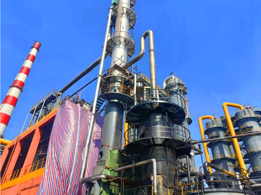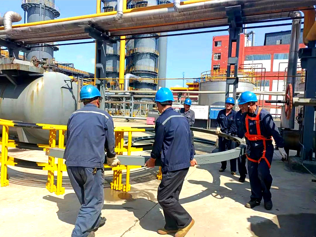 再生器是陕焦公司化产二车间生产运行的关键设备之一,其作用是让部分循环洗油进入,利用内部400℃直接过热蒸汽将洗油中的高分子老化油质变成沥青渣,从再生器排出,改善循环洗油质量。但由于蒸汽和洗油长时间冲刷腐蚀,再生器今年出现多个漏点,严重影响正常排渣周期,使洗油消耗增大。 “再生器必须尽快检修,工艺组查图纸编写检修工艺处置方案;设备组观察管道方位,计算所需材料、报材料计划;安全环保组,仔细研究分析介质处理办法……”该车间党支部书记、主任焦军社从人员保障、备品备件、工艺处置、安全防护等方面对检修工作进行了安排部署,拉开了再生器更换检修的序幕。 据了解,该车间粗苯再生器位置特殊,西侧为粗苯生产厂房,东侧是排渣罐,再加之近期天气多变,时有雷雨天气侵扰,多种因素使检修作业难度增大。因此,该车间多次研究讨论检修方案,提前预判检修过程中可能出现的各类问题,并制定应对措施,确保检修万无一失。7月20日早上7:00时,该车间检修队伍齐聚检修现场,按照检修方案,检修人员首先对吊车的位置进行了确认,用篷布对厂房进行防护,并提前准备好灭火器、蒸汽带等物品,确保检修安全,安全检修。随后,该车间当班班长范耀建带领工艺处置人员开始排空管式炉、换热器和管道内部存油,对再生器和脱苯塔进行蒸汽吹扫置换。工艺处置完成后,检修人员则分成两组,一组负责对旧再生器管线进行拆除,另外一组负责对新再生器平台护栏安装。接下来的几天时间,为保质保量完成检修任务,维修人员顶着烈日,迎着风雨,争分夺秒,加班加点,全力以赴做好检修各项工作,公司各级管理人员深入检修现场办公,协调处理检修过程中遇到的各类问题。 7月26日上午11:00时,在检修人员和岗位操作人员的共同努力下,粗苯再生器更换任务比原计划提前2天完成。“新再生器投入使用后,不仅可以从根源上保证循环洗油的质量,还提高了苯的吸收效率,减少了洗油浪费,在不断强化车间环保管理的同时,还降低了能耗,可谓一举两得。”该车间副主任王林林说。