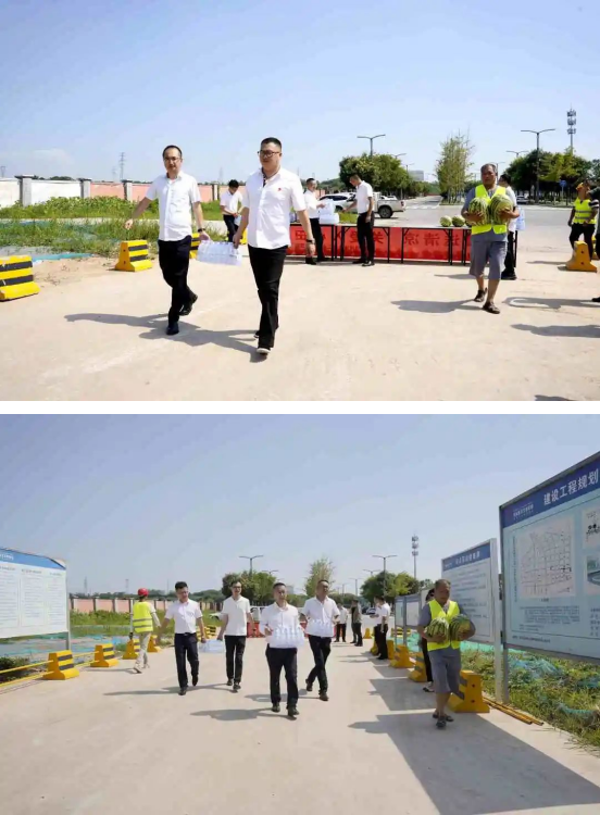 时值三伏,酷暑难耐,为了落实做好防暑降温安全生产工作,确保项目施工人员的安全与健康,促进项目安全施工。7月28日,中明建投集团工会赴西咸新区兴华街(安远路—临空大道)市政工程项目现场开展了 “酷暑送清凉 关爱入心田”慰问活动。 活动由集团总裁高良带队,党支部书记霍炎、副总经理刘磊、副总经理董斌及工程管理中心相关负责人陪同前往项目现场,为一线工人送去了纯净水、西瓜等防暑降温物品。 在慰问现场,集团总裁高良向不畏酷暑在岗位上兢兢业业的一线职工表示感谢,感谢他们为集团安全建设、绿色施工等工作所做的努力与贡献,并亲手将慰问物品一件件分发给一线工人,还叮嘱他们要保重身体、劳逸结合,注意防暑降温。 随后,总裁高良一行和项目部负责人深入施工现场,详细了解施工进度,并要求项目负责人要注意防暑降温,科学合理安排一线职工作业时间,做好作业场所的劳动保护措施,守牢安全生产底线,同时要求项目部要做好防洪防汛防灾害等应急安全防范工作,确保集团在建项目持续安全稳定。 此次送清凉慰问活动,不仅使广大一线施工人员感受到了来自集团公司的关心与爱护,也加强了项目部全体人员的“安全”意识,激发了他们爱岗敬业的工作热情,为公司夏季安全生产工作的顺利开展奠定了良好的基础。