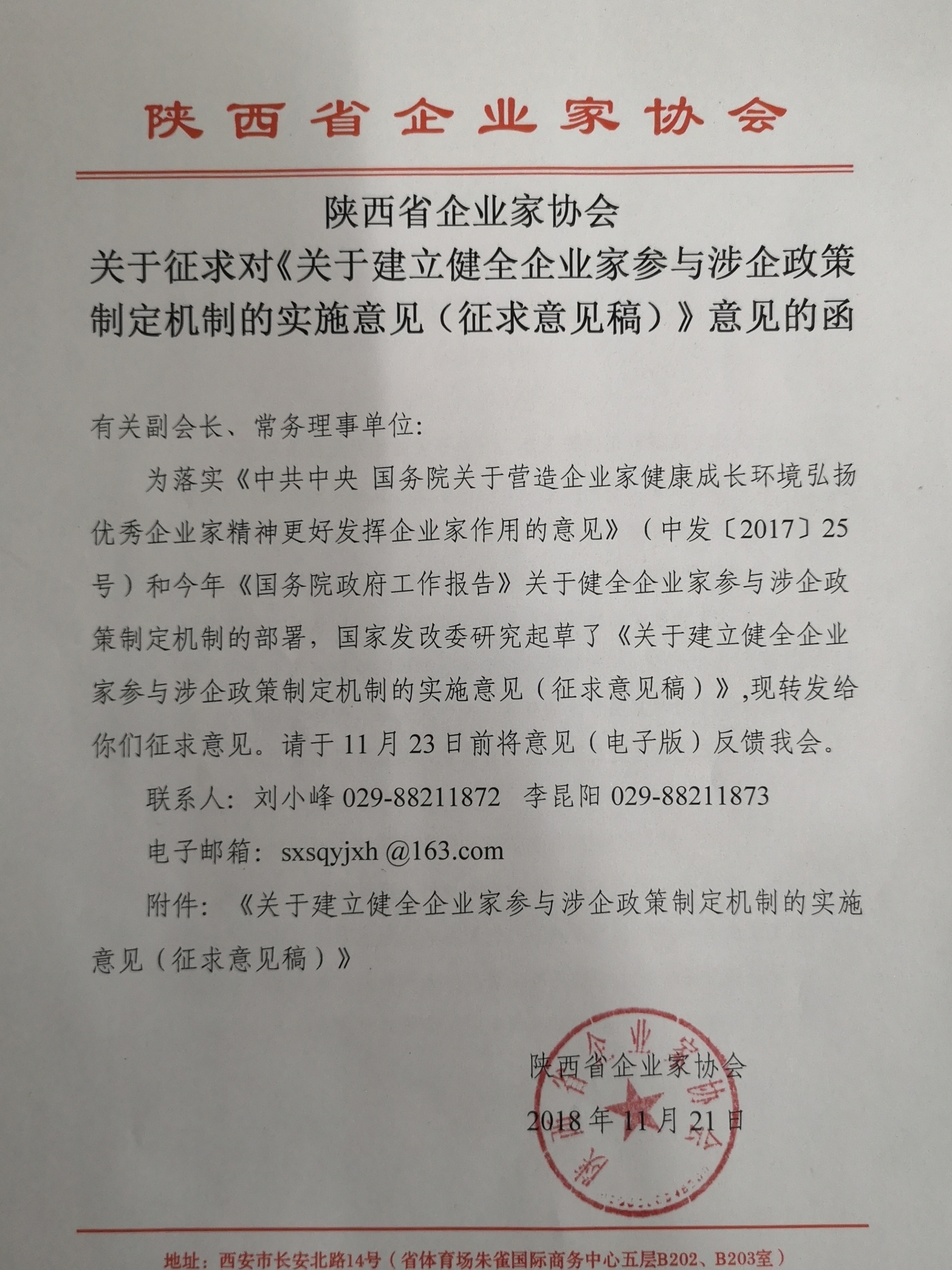 关于建立健全企业家参与涉企政策制定机制的实施意见(征求意见稿)