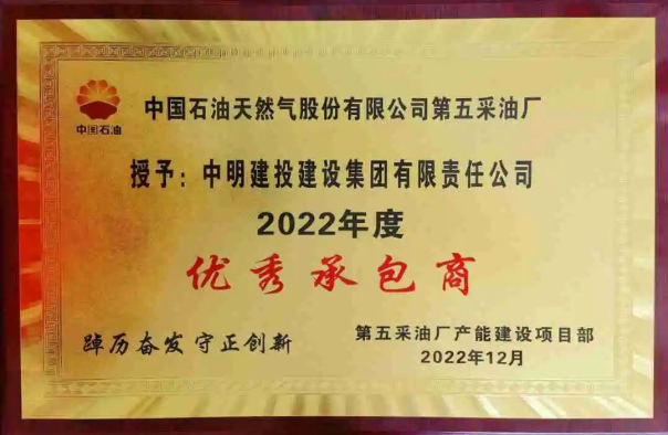 3月1日,中国石油天然气股份有限公司第五采油厂召开了第五采油厂产能建设项目组地面建设专题启动会,经第五采油厂产能建设项目部考核评定,中明建投集团承建的第五采油厂化验楼项目获评“2022年度优秀承包商”荣誉称号! 第五采油厂项目自2022年6月中旬正式开工建设,项目部在施工前进行了详细勘察,制定了周密的施工方案,在施工中克服了种种不利因素,项目部全体人员齐心协力、攻坚克难,充分发挥集团“建精品工程 创优质品牌”的宗旨,认真落实各项管理措施,使施工现场管理规范,质量安全把控良好,最终安全、优质、圆满的完成了施工任务,得到了甲方的广泛认可。 此次荣获“2022年优秀承包商”称号,既是甲方对第五采油厂项目部出色工作的肯定,也是对集团在项目管理成效的肯定和鞭策,我们将以此为动力,继续担当作为,履职尽责,强化风险意识,狠抓项目管理,为打造行业标杆继续努力奋进!