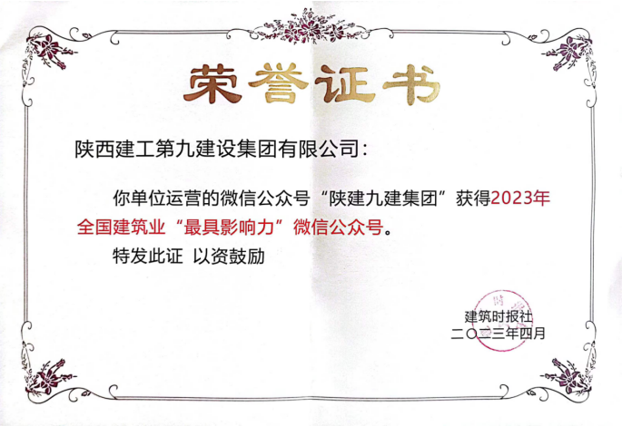 4月20日,在建筑时报社主办的2023年建筑业微信公众号运维经验交流研讨会暨全国建筑业优秀公众号颁奖典礼上,陕建九建集团官方微信公众平台“陕建九建集团”凭借良好的运维服务,较高的行业影响力,连续三年荣获全国建筑业“最具影响力”微信公众号荣誉。 据悉,此次会议以“共建·共融·共创”为主题,近300位来自全国各地建筑业协会、建筑企业的参会代表汇聚一堂,共同研讨目前行业的新媒体生态,分享交流新媒体运维经验。 一直以来,在陕建九建集团党委的坚强领导下,集团党委宣传部始终坚持以习近平新时代中国特色社会主义思想为指导,围绕中心、服务大局,着力突出学习宣传贯彻党的二十大精神这一主线、突出紧紧围绕企业改革经营发展大局这一关键,业务工作扎实开展,着力推动企业品牌建设与文化传播。 无论是省十七运会的专题报道还是抗洪抢险的建设纪实,无论是方舱医院的逆行而上还是榜样人物的细心采访,全体宣传工作人员以高度的责任感和使命感,持续维护确保意识形态领域安全,持续提升企业文化软实力和影响力,持续推进精神文明建设,持续讲好“九建故事”,不断推动企业宣传思想文化工作实起来、亮起来、活起来。 连续两年荣获陕建集团宣传报道先进单位,在企业高质量发展的“赶考”路上,交出了一份优异“答卷”。 截止2022年底,微信关注人数突破12500人,较去年同期同比提升超过31.6%,抖音平台粉丝数超过2.1万人,同比增长17%,关注人数与粉丝数均位居陕建系统前三。 今后,九建集团宣传部门还将始终坚持党建引领,深入强化“向善而建”企业文化理念体系学思践行。 持续统筹推进理论武装、意识形态、新闻宣传与企业文化建设工作,以基础管理提升为抓手,积极发挥宣传思想文化工作围绕中心、服务大局作用,讲好九建故事、树好九建品牌,为集团实现“十四五”发展目标提供坚强思想保证和强大精神力量。