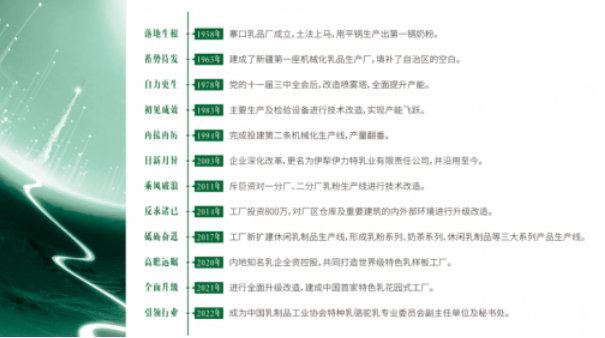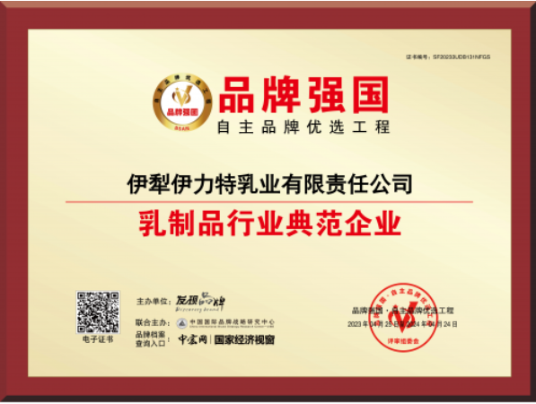 2023年4月24日,伊犁伊力特乳业有限责任公司经过资质审核、舆情监控等层层筛选,成功入选为品牌强国优选工程“乳制品行业典范企业”,企业信息录入品牌强国优选工程数据库,在官方平台向大众展示品牌形象。 伊犁伊力特乳业有限责任公司始创于1958年,位于伊犁州尼勒克县七十九团,是一家以特色乳为主的集动物养殖、乳品研究、加工、销售为一体的乳品企业。 依托兵团八大核心牧场的原生态奶源优势,伊犁伊力特乳业专业生产骆驼奶、马奶、绵羊奶、褐牛奶、新疆奶茶粉等各类特色乳品。公司始终坚守品质第一的理念,从生态养殖、收奶检疫、生产加工到成品上市,层层把关,严守品质,确保让消费者喝到源自新疆的放心营养好乳品。 凭借优良的质量和优质的服务,伊犁伊力特乳业先后被评定为中国乳制品工业协会常务理事单位,中国乳制品工业协会特种乳骆驼乳专业委员会秘书处驻地,新疆石河子大学食品学院产学研实践基地。2021年,企业荣膺“中华人民共和国第十四届运动会特许商品供应商”。2022年“第六届丝绸之路国际博览会指定乳品供应商”、“联合国采购供应商”。 未来,伊犁伊力特乳业将继续以“打造世界级特色乳样板工厂”为目标,积极推动中国特色乳业高质量发展,成为特色乳行业的领军企业。 品牌是企业无形的财富,也是综合国力竞争的重要力量,正是意识到此,“品牌强国”战略应运而生。优选工程以征集、遴选典范企业、成员单位、专项典范企业与典范基地为主线,旨在打造专业性、国际化自主品牌优选推广平台,发挥品牌引领作用,树立新时代中国自主品牌形象。