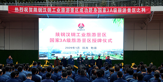 1月9日,陕钢集团汉钢公司工业旅游景区国家3A级旅游景区授牌仪式在汉钢公司举行。汉中市文化和旅游局党组书记、局长王耀,汉中市文化和旅游局副县级干部陈炜,勉县人民政府副县长王刚刚,勉县文化和旅游局局长袁小兵,汉钢公司党委书记、董事长武军强,公司党委副书记、总经理顾兴钧,汉钢公司党委委员、工会主席屈海涛,公司总经理助理付成勇,公司总经理助理王奎,公司党委委员、副总工程师房金乐,各单位负责人及职工代表共计300余人参加了授牌仪式。 王耀为公司授牌 王耀为公司授牌,并对陕钢集团汉钢公司工业旅游景区获评国家3A级旅游景区表示祝贺。他指出陕钢集团汉钢公司工业旅游景区的成功创建为国家3A级旅游景区,不仅有助于加深消费者和社会公众对钢铁企业的认识,提高企业的知名度和影响力,更填补了汉中市工业旅游的空白,有力推动了汉中市工业突破和全域旅游的创新发展,为勉县创建国家全域旅游示范县奠定了基础。他对汉钢公司为区域经济发展和旅游事业作出的贡献表示感谢,并希望汉钢公司工业旅游景区能够创新绿色发展模式,拓展绿色发展内涵,助力汉中市完成国家全域旅游示范市的验收,为打造“学研在汉中、康养在汉中、旅居在汉中、兴业在汉中”四张城市名片展现新作为、贡献新力量。 武军强代表公司党政对参加授牌仪式的领导表示欢迎和感谢。他指出,公司工业旅游景区成功跻身国家3A级景区之列,成为了汉中市唯一一家工业旅游景区,顺利进入了汉中3A级景区的大家庭,充分体现了社会各界对公司生态环保工作的肯定,对公司工业旅游景区建设的认同与支持。公司将以习近平生态文明思想为指引,深入践行五大发展理念,在工业旅游景区建设上不断创新,通过“钢铁是怎么样炼成的”这个旅游品牌,充分展示汉中钢铁产业“环境优、效益好、竞争强”的现代化钢铁企业新形象,为汉中市创建国家全域旅游示范城市作出更大的贡献。 授牌仪式上,陈炜宣读了《汉中市旅游景区质量等级评定委员会公告》。