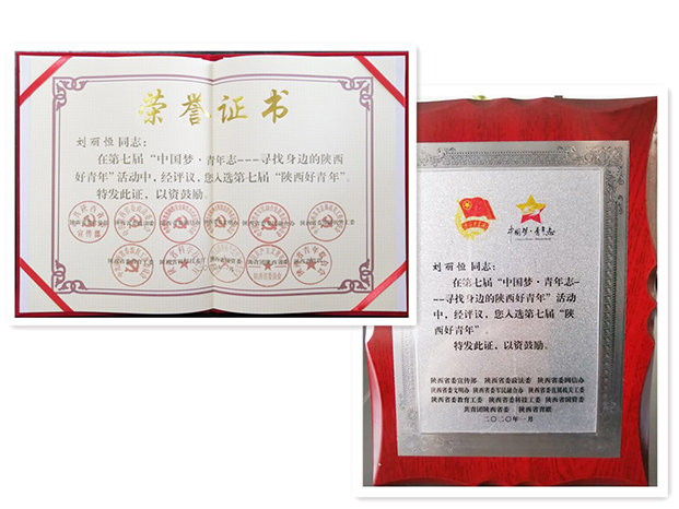 2020年1月13日,由团省委、省青联联合省委宣传部、省委政法委、省委网信办、省委文明办、省委直属机关工委、省国资委、省委教育工委、省委军民融合办、省委科技工委11家单位共同举办的第七届“陕西好青年”颁奖仪式,在西安航天基地空天小镇会议中心举行。 “陕西好青年”的活动主办方通过资格审查、网络投票、专家评审等流程,分上、下半年,从全省近500名候选人中,评选出创优、创新、创业、尚德、公益、网络、扶贫、平安八大类别充满生活气息、具有时代特征、传递青春正能量的青年榜样及集体典型。最终,刘丽恒等70名同志被评为第七届“陕西好青年”,西安市公安局特警支队四大队等32个集体被评为第七届“陕西好青年集体”。届时,百余名“陕西好青年”在现场共享荣耀时刻。 雄峰集团总经理刘丽恒在发展企业的过程中,始终以向上、向善、向阳的积极态度带领雄峰人肩负着科技兴企、造福大众的初心和使命,只争朝夕,不负韶华,一步一步的向上攀登......