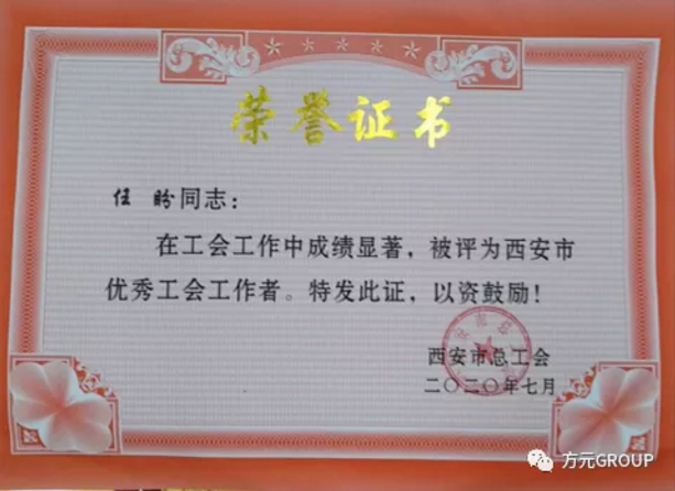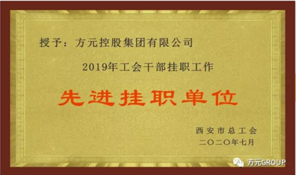 为进一步密切联系非公有制经济组织和社会组织,着力服务基层,实现基层工会组织“建起来、转起来、活起来”,根据市委组织部的要求,市总工会于2019年在全市工会系统选派了百名工会干部到非公有制经济组织和社会组织挂职工会副主席(工会工作专员),引领全市职工在打造铁军队伍,奋力追赶超越的实践中,奋发有为作出更大贡献。曲江新区工会选派工会干部王佳音同志入住方元控股集团有限公司进行挂职。 在8月4日召开的“西安市工会干部挂职工作期满总结座谈会”上,对挂职工会干部期满考核结果进行了通报,并向表现突出的个人和集体进行表彰。 其中曲江新区工会挂职方元控股集团有限公司工会副主席王佳音女士,因在挂职期间扎实工作,在推动工会组织建设、规范化管理方面取得突出成效,荣获“挂职干部期满考核优秀人员”;方元控股集团有限公司荣获“先进挂职单位”称号;方元控股集团有限公司工会主席任盼女士荣获“西安市优秀工会工作者”称号。 荣誉的获得不仅是对方元集团工会工作的肯定与认可,同样也是对工会的鞭策与鼓励。在过去的一年里,方元集团工会在上级工会的正确领导下,在公司各级领导和员工的共同努力下,坚持以服务职工为出发点和落脚点,不断丰富职工文化生活,加强工会自身建设,创新工作、主动作为,为企业健康稳定发展做出了积极的贡献。 未来,方元集团工会将以此作为新起点,向更加正规、更加全面、更加守则的优秀工会组织迈进,持续发挥好桥梁纽带作用,全力营造和谐稳定、健康向上的劳动关系,推动集团工会工作再上新台阶。