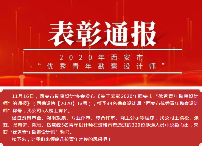 今日聚焦 | 中联西北院5人荣膺“西安市优秀青年勘察设计师”称号