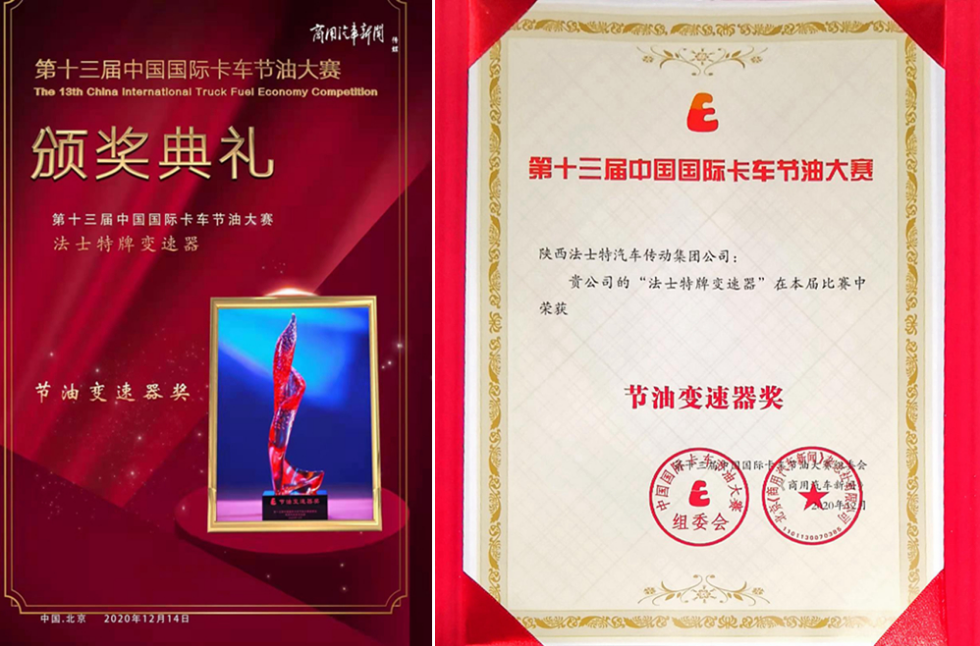 12月14日,“第十三届中国国际卡车节油大赛”颁奖盛典在北京举行,法士特再次荣获“节油变速器奖”。这已是法士特连续13届摘得中国国际卡车节油大赛奖项,成为齿轮行业唯一获此殊荣的企业。 卡车优异的油耗表现离不开零部件的加持。经过市场以及赛场的重重考验,法士特变速器凭借良好的用户口碑及可靠的性能表现摘获节油变速器奖。 法士特变速器采用轻量化设计,智能高效、节能环保、可靠性高,爬坡能力强、燃油经济性好,现已成为各大主流高端商用车的优选配置。 作为业内最具影响力的节油赛事之一,节油大赛始终秉承公平、公开的办赛原则,为卡车行业节油技术、节油产品的迭代升级摇旗呐喊,为用户选车、购车、用车提供权威参考。
