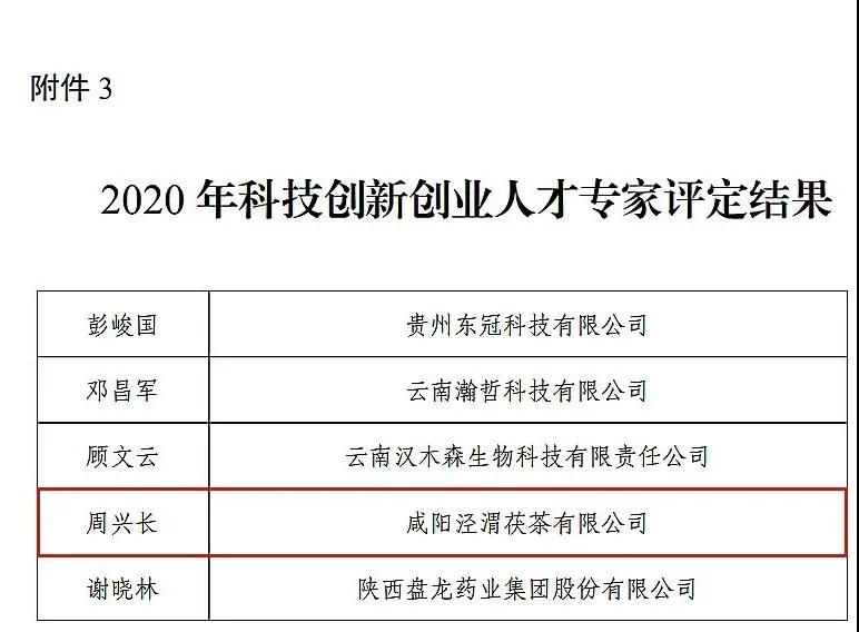 根据全国工商联《关于开展2020年科技综合服务的通知》精神,工商联系统开展了2020年项目类科技成果、科技创新创业人才推荐评定工作。泾渭茯茶总经理周兴长荣获“全国工商联2020年科技创新创业人才”称号。 自泾渭茯茶成立以来,总经理周兴长带领团队始终坚持在传承茯砖茶传统技艺的基础上加大科技研发、创新,不断引进科研人才,并加强与各高校科研平台的合作,以科技创新不断促进茯茶产品的提质增效。本次入选“全国工商联2020年科技创新创业人才”,是对总经理周兴长在科技创新及研发成果方面的认可和鼓励,他表示企业今后会继续加大科研创新力度,实施技术领先战略。