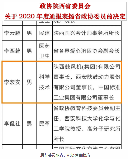 为表扬先进、树立典型,激发省政协委员积极投身陕西全面建设社会主义现代化新征程的积极性、主动性,根据《政协陕西省委员会通报表扬作出突出贡献的政协委员和海外列席人士办法(试行)》(陕政协发〔2020〕12号)有关规定,在各专门委员会认真推荐、综合考评委员年度履职情况的基础上,经省政协十二届五十三次主席会议审议通过,政协陕西省委员会决定对陕鼓集团党委书记、董事长,陕鼓动力董事长,标准工业集团党委书记、董事长李宏安等30名省政协委员予以通报表扬。 作为陕西省政协委员,近年来,李宏安董事长心系陕西发展,针对环境保护、陕西省工业和社会经济发展实际,提出了二十多项议案,为促进陕西经济和营商环境的持续提升,促进中国工业经济的发展积极建言献策、贡献力量。 这些提案以经济建设领域为主,涉及推进陕西省分布式能源产业发展,加快陕西省国有企业科技成果转化政策细化及落地,促进制造业企业从传统型向服务型转型,抢抓工业互联网机遇提升陕西省智能制造基础水平,支持“一带一路”背景下我省制造业企业“走出去”发展,推进我省两业融合发展等16件。涉及创新陕西扶贫模式坚决打赢脱贫攻坚战,治污减霾发展分布式能源多能互补,降低企业社会保险缴费比例等社会建设领域提案3件;涉及政治建设领域和文化建设领域提案3件。其中,李宏安委员提出的《关于降低企业社会保险缴费比例的提案》还被评为省政协十二届三次会议优秀提案。李宏安委员积极参加政协各项活动,认真履行委员职责,带头做好“委员作业”,体现了强烈的责任担当。 国家主席习近平在出席第七十五届联合国大会发言中指出:“中国将提高国家自主贡献力度,采取更加有力的政策和措施,二氧化碳排放力争于2030年前达到峰值,努力争取2060年前实现碳中和。”陕鼓集团的使命就是为人类文明创造智慧绿色能源,为创造低碳、零碳而奋斗。近年来,李宏安董事长带领陕鼓集团站在分布式能源革命潮头,战略聚焦分布式能源,为客户提供以分布式能源系统解决方案为圆心的“1+7”增值服务。陕鼓也迎来了53年创新发展历程中软实力和硬实力最好的发展时期,企业相继获得“国际十大节能技术和十大节能实践奖”“世界制造业创新产品金奖”等国际大奖;相继荣获“中国工业大奖”“中国国家科学技术进步奖”“全国五一劳动奖状”“全国绿色工厂”“全国质量奖”“全国企业文化示范基地”“全国工业企业品牌示范基地”等诸多荣誉。“陕鼓模式”多次被写入陕西省和西安市政府工作报告,陕鼓集团智慧转型经验已得到国家工信部的推广。2020年,陕鼓集团在“中国机械500强”榜单中排名晋升38位,跃居前百名行列,是唯一一家进百名的陕西企业。 获得荣誉不仅是对李宏安委员的认可,更是对陕鼓集团的鼓舞和鞭策。2021年是我国全面建设社会主义现代化国家的开局之年,站在奋力谱写陕西新时代追赶超越新篇章和新时代分布式能源潮头的起点上,陕鼓将再接再厉,发力“十四五”规划宏伟目标,以陕鼓智慧绿色系统解决方案推进低碳和零碳中国行动,以突出的企业经营业绩和丰硕的履职成果,为谱写陕西新时代追赶超越新篇章作出新的更大贡献,以优异成绩献礼中国共产党成立100周年。