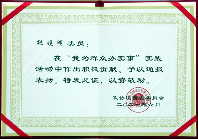 6月30日,省政协举行庆祝中国共产党成立100周年大会,通报表彰在“我为群众办实事”实践活动中表现突出的19名省政协委员。泾渭茯茶董事长纪晓明等省政协委员受表彰。