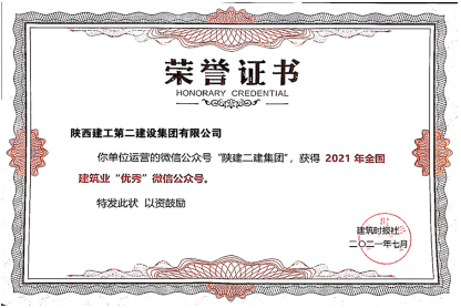 日前,由建筑时报社主办的2021建筑业微信公众号运维经验交流研讨会暨全国建筑业优秀公众号颁奖典礼在扬州召开。会上公布了2021年全国建筑业优秀微信公众号榜单,陕建二建集团等191个微信公众号经过综合评定荣获“2021年全国建筑业优秀微信公众号”称号,这是集团微信公众号连续第二年获此殊荣。 据悉,陕建二建集团微信公众号开通于2015年,截止目前已有近5000名的粉丝关注量,点击阅读量不断提升。自开通以来,集团公众号坚持宣传党和国家方针政策,弘扬建造精品的鲁班精神,围绕企业中心工作,宣传企业发展成就、精品工程和好人好事,宣传企业大事要闻,科研创新成果、精神文明建设成果,展示职工良好精神风貌和生产生活场景等,传播优秀企业文化,弘扬社会主义核心价值观,传播正能量,外树形象,内聚合力,有效发挥了宣传引导作用,受到广泛好评!