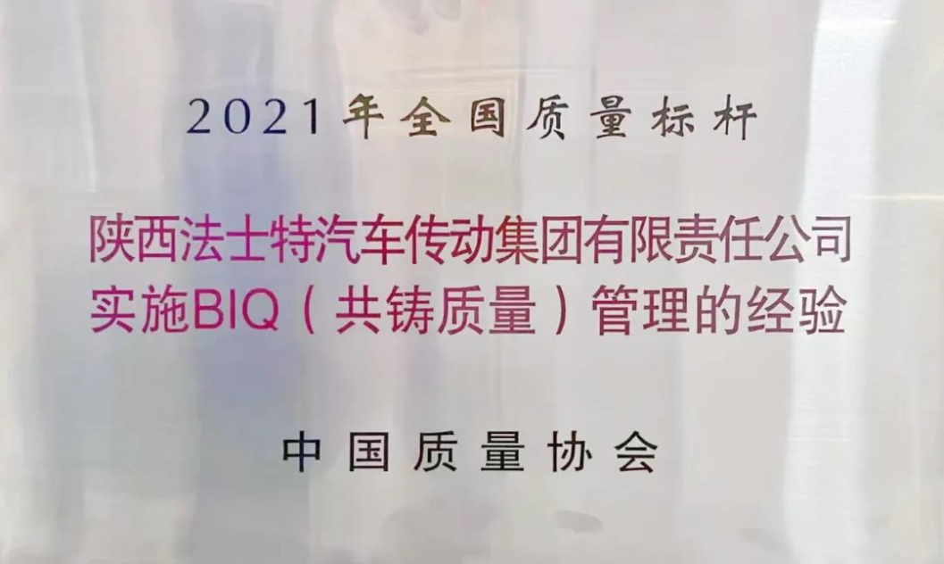 近日,中国质量协会发布2021年度全国质量标杆名单,法士特申报的《实施BIQ(共筑质量)管理的经验》荣获“2021年全国质量标杆” 称号。 近年来,法士特基于管理概念的引入、推进,不断融合企业文化进行改进创新,依托QMS信息化平台,以质量大数据为基础,用8D问题解决方法,全员参与共铸质量,形成了具有法士特特色的质量管理文化。 受工业和信息化部委托,中国质量协会组织开展2021年全国质量标杆评选活动。活动结合产业基础高级化、产业链现代化,深入挖掘全面质量管理赋能制造业竞争优势提升、促进制造业高质量发展的典型经验。