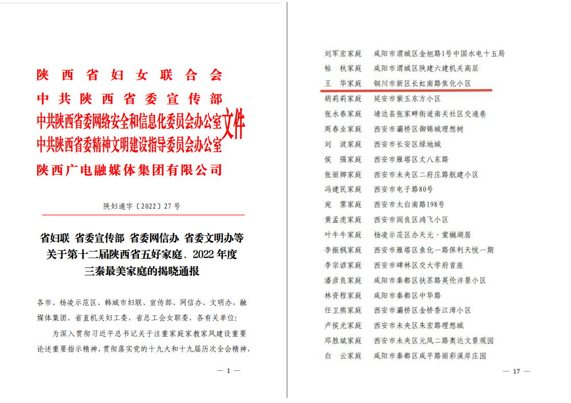 近日,从《省妇联、省委宣传部、省委网信办、省委文明办等关于第十二届陕西省五好家庭、2022年度三秦最美家庭的揭晓通报》中获悉,陕焦公司王华、黄稳利家庭荣获2022年度三秦最美家庭。 王华现任陕焦公司炼焦一车间党支部书记、主任,扎根陕焦已27个年头。这些年来,王华在平凡的工作岗位上,靠着踏实、勤奋、苦干实干的工作作风,取得了不平凡的成绩,从一线工人,一步步成长为企业技术带头人、基层领导、陕西省产业工匠,并于2012年荣获陕西省“劳动模范”荣誉称号。王华在工作中表现出色,在生活中更是传承良好的家风家训。 王华和妻子黄稳利的父亲都是退伍老兵,双方母亲也都是生长于农村,父亲的正直、严厉,母亲的淳朴、慈爱,是两个家庭相同的特质,也是夫妻二人用之不竭的精神财富。妻子黄稳利担任车间工会主席,工作积极认真,热情服务职工,热心于公益工作,特别是近两年疫情期间,积极参与单位、社区抗疫,获得领导、职工的一致好评。良好的家风和夫妻二人的真诚友善,也成就了和睦的邻里关系。在平时生活中,夫妻二人以身作则,对双方老人用他们喜欢、适合的方式尽孝。近几年,双方父母年迈多病,公公或婆婆住院,黄稳利经常伺候,洗洗涮涮、照顾起居。岳父在参战中受伤,患脑出血后出现失忆症,王华多次带领岳父探望年迈战友,帮助岳父恢复记忆、激发岳父对抗病魔的勇气。父母的榜样是子女最好的教科书,王华女儿上大学后,担任团支部书记和学生会副主席,假期回家会主动做家务,给爷爷奶奶、外公外婆洗脚、剪指甲。质朴醇厚的家风得以传承,孝老爱亲的传统美德得以弘扬。 尊老爱幼、夫妻和睦、勤俭持家、邻里团结,这些传统的家庭美德在王华家庭体现的淋漓尽致。近年来,陕焦公司不断在职工中培育和践行社会主义核心价值观,强化职工思想教育、品德教育,今后,陕焦公司还将继续深入参与开展此类活动,弘扬中华传统美德,传递企业正能量。