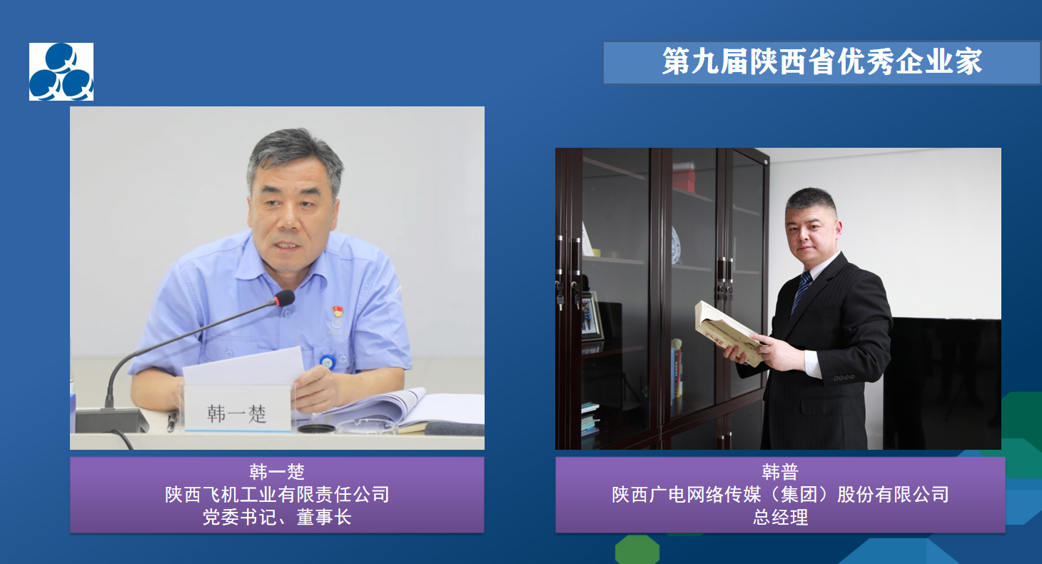 以下转载自:陕西省企业家协会官网 为表彰优秀企业家在我省经济和社会建设中作出的突出贡献,促进全社会形成关心、爱护、尊重、支持企业家干事创业的市场环境和社会氛围,经省政府同意,2021年-2022年省企业家协会联合省青年企业家协会、女企业家协会在全省范围内开展了推荐和评选“第九届陕西省优秀企业家”活动。在省委宣传部、省发改委、工信厅、财政厅、人社厅、商务厅、国资委、总工会、团省委、省妇联、陕西工人报社等单位、媒体的大力支持和共同参与下,经过申报、初审、考察、复审、综评、评选、公示等程序,评选出丁德明、吴志鹏、王蕊等84名企业家为“第九届陕西省优秀企业家”。 企业家是经济活动的重要主体,是企业的统帅和灵魂,是改革创新的重要力量,也是推动经济社会发展的生力军。受表彰的优秀企业家在爱国敬业、遵纪守法、改革创新、精细管理、转型升级、节能减排、提质增效、企业文化、安全生产、推动企业可持续发展中成绩显著,在积极承担企业社会责任、构建和谐企业、抗击新冠疫情、不断拓展国际视野等方面发挥了示范表率作用。 希望全省的企业家向他们学习,发扬企业家敢为人先的改革创新精神,适应新时代的要求,为企业做大做强做优贡献力量。希望受表彰的企业家,在国内外风险挑战明显增多及新冠疫情严峻复杂的形势下,全面贯彻落实党的二十大精神,围绕省委省政府中心工作,引导更多企业家立足新发展阶段,贯彻新发展理念,构建新发展格局,加快结构调整和转型升级,推进我省企业高质量发展,为陕西经济社会长期持续发展再立新功。 第九届陕西省优秀企业家光荣榜 (按姓氏笔画排序)
