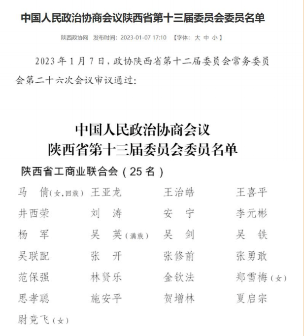 2023年1月11日至15日,政协陕西省第十三届委员会第一次会议在西安召开。来自32个界别的500多名省政协委员出席大会。我司董事长吴剑当选政协陕西省第十三届委员会委员,并在政协陕西省第十三届委员会常务委员会第一次会议上当选为政协陕西省第十三届委员会港澳台侨和外事委员会副主任。 吴剑,男,1973年出生,陕西永寿人,中共党员;工商管理硕士;高级工程师、国家一级注册建造师;中国施工企业高级职业经理人;陕西省及中国幕墙行业“幕墙专家”;2006年、2010年、2012年、2013年分别荣获“陕西省建筑装饰优秀企业家”;陕西省企业家协会“2020年陕西企业文化建设突出贡献人物”。 现任中国建筑装饰协会幕墙分会第七届副会长,陕西省建筑装饰协会副会长,陕西省建筑装饰协会幕墙分会会长,西安市建筑装饰协会副会长,西安市建筑安装行业协会常务副会长,西安天幕实业有限公司董事长。 天幕集团董事长吴剑在参加分组讨论和接受记者采访时表示:十分感谢陕西省各级领导的信任支持,入选政协陕西省第十三届委员会委员,不仅是一种荣誉,更是一种责任。在今后担任政协委员期间,一定履职尽责,主动作为,以更多好提案、好建议体现担当、彰显责任,关注民生、体察民情、聆听民心,围绕省政府工作中心,着眼大局,积极建言献策,为加快建设高品质发展作出新的更大贡献! 同时,作为一个建筑科技行业的从业者,定将不负众望,要高举中国特色社会主义伟大旗帜,全面贯彻习近平新时代中国特色社会主义思想,深入贯彻国家及省市各部门颁布的政策,助推绿色节能智能建筑发展,提高城镇化发展质量,推进绿色建筑和建筑节能进程,实现建筑科技数字化、装配化、智能化发展,为加快建设幕墙强国、美丽中国贡献自己的一份力量。