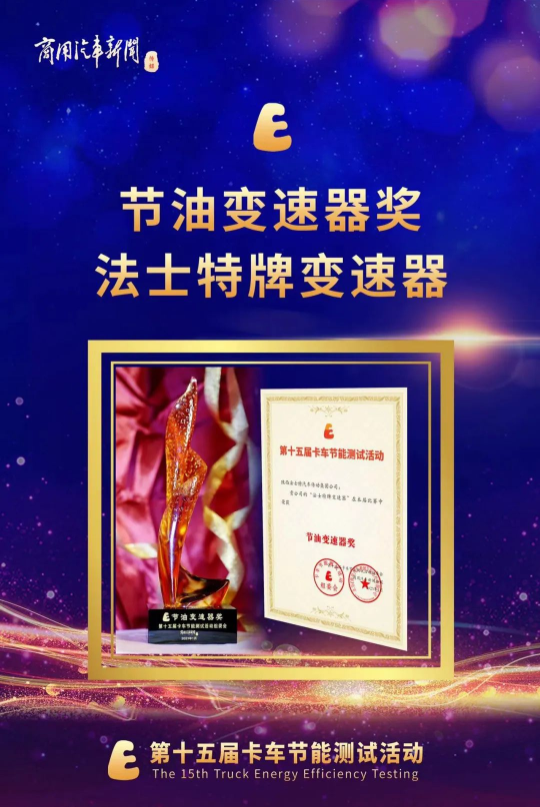 1月16日,第十五届卡车节能测试活动颁奖典礼以线上形式举行。法士特变速器连续十五年荣获“节油变速器”殊荣。 节油是系统工程,整车节油离不开零部件节油的贡献。“法士特牌变速器”获此殊荣,不仅仅是因为在节能测试中表现出色,不少卡友用真实运营数据验证了法士特变速器优秀的节油能力,节油也是法士特变速器真实的市场口碑。能跑能省,舒适安全,法士特变速器将持续为广大卡友降本增效、致富创富贡献一份助力。 未来,法士特将紧盯行业前沿技术,坚持自主创新,研发更具实力的技术和产品,为商用车升级换代提供了源源不断的全新优化配置。