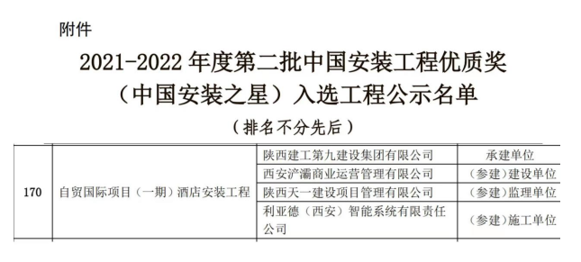 日前,中国安装协会公布了2021-2022年度第二批中国安装工程优质奖(中国安装之星)名单,其中九建集团承建的自贸国际项目(一期)酒店安装工程成功入围。 据悉,中国安装工程优质奖(中国安装之星)为国内安装工程质量方面的最高荣誉,又被称为安装工程的“鲁班奖”,其入选工程也代表着国内安装工程领域的先进技术和最高质量水平,目前集团已连续四年获此殊荣。 作为西安浐灞自贸生态“双核引擎”以及西安市重点工程,自贸国际项目(一期)酒店工程也将为完善和优化西安国际化大都市的功能布局注入强劲动力。 同时,该项目也成为集团继神木新村产业发展服务中心、西安高新国际会议中心、靖边中医医院医疗综合楼后又一摘“星”力作。 自贸国际项目工程位于西安市世博大道以北,锦堤三路以西,框架核心筒结构,总建筑面积69621.64平方米,总造价约6.21亿元。其中地下2层、地上24层,是一座集客房、会议、休闲、餐饮为一体的设计先进、功能完善的星级酒店。 自开工伊始,九建集团便以“匠心建造 品质赢心”为己任,锁定“星”目标,始终坚持“策划先行、样板引路、过程控制、一次成优”的管理理念,勠力同心,精益求精,做好总体布局与细节把控,确保工程始终处于高标准、严要求的受控状态,其中机电安装更是亮点纷呈。 作为以创新智能化为建设核心的综合性服务建筑,该工程核心机房包括制冷机房、换热机房、空调机房、排烟机房、生活给水泵房、消防泵房、消防稳压泵房等,为保质保量实现按时完工,项目摒弃传统机电安装模式,依托智能建造产业基地装配优势,运用BIM技术深化设计、实现工厂化集中预制、现场模块化安装,极大压缩了施工时间,达到降本增效、绿色发展,实现高质量智能化建造。 此外,该工程制冷机房设备繁多、空间狭小,综合排布复杂,且柴发燃油系统复杂,设备、仪表众多,施工技术难度大,质量要求高,工程过程极富挑战性。 对此,九建铁军提前策划、研究讨论。一方面深度优化各专业图纸,应用BIM技术对各类设备、管线进行综合排布,检测消除各类碰撞,分层施工,达到排布有序,施工合理,运行正常。 另一方面依据施工现场具体情况,实时把控、实时调整,统一施工,达到油泵成排、仪表整齐的效果。同时全过程应用BIM技术,精心策划,精细部署,将施工重难点转化为工程亮点。 生活水泵房镜像布置、热水机房安装规整、空调机房空间合理、报警阀组成排成线、弯头减震支架做法新颖......无一不将“安装之美”展现淋漓,更是将一丝不苟,追求卓越的工匠精神于长安大地熠熠生辉。 近年来,九建集团始终坚持科技赋能发展,不断依托行业优势,砌起智能化建造壁垒,当好创新驱动发展的排头兵,持之以恒跑出九建技术创新加速度。 未来,九建集团也将持续深耕建筑创新领域,以科技驱动视野,以匠心打造品质,将创新势能转化为发展动能,加速科技创新研究成果向生产力转化,不断拓宽探索边界,塑造发展优势,打通市场经脉,擦亮品牌底色,奋力书写集团高质量发展的新篇章。