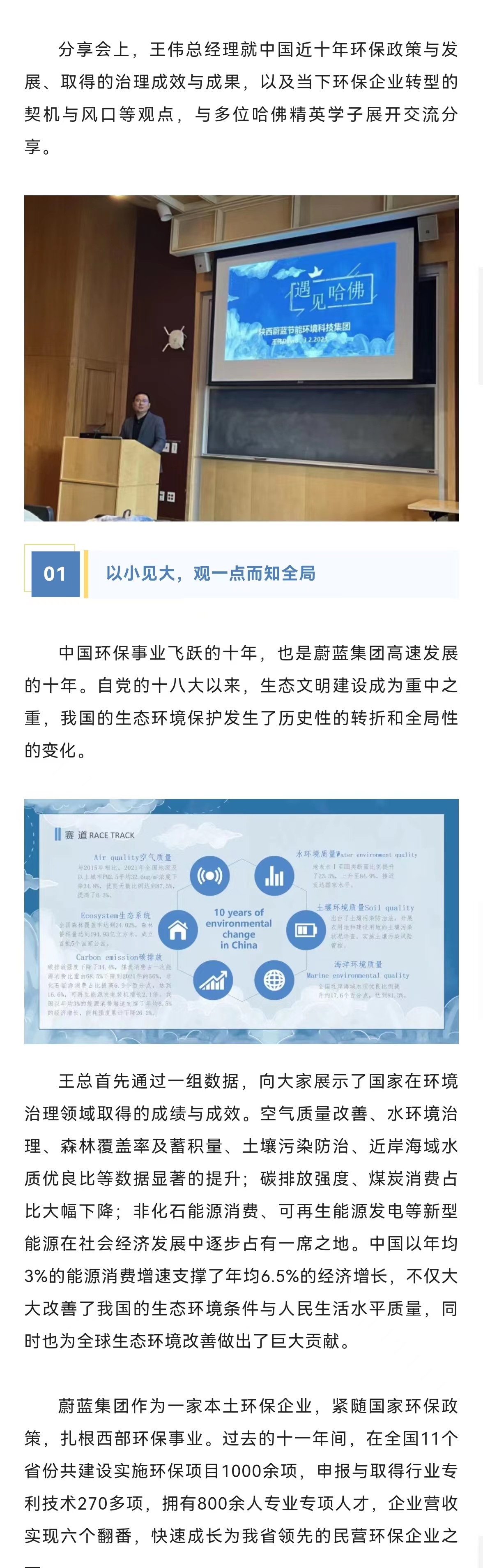 交流与碰撞|集团总经理王伟受邀哈佛学联“百家谈”共话国内环保赛道与企业的协同发展之道