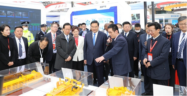 春风和煦,阳光正好。4月7日至9日,以“高端引领 多元融合 低碳发展”为主题的第十七届榆林国际煤炭暨高端能源化工产业博览会在榆林举行。陕煤集团作为首席荣誉主办单位参加本次展会。 开幕式结束后,陕西省政协副主席、榆林市委书记张晓光,省贸促会会长马玉红等领导嘉宾,在陕煤集团党委委员、副总经理尚建选陪同下参观陕煤集团展区。 本届煤博会,陕煤集团组织了所属煤炭、化工、装备制造、科技、建材等板块公司参展,主要通过实物产品、宣传册、展板、视频、模型等形式,充分展示了陕煤集团在智慧矿山建设、煤化工技术、化工产品、新材料研发、固废资源利用、5G专网建设等领域所取得的成绩和工作亮点。 陕西煤业股份公司通过展板主要对“四化”建设、打造智慧矿山、智能化建设规划进行了展示。曹家滩矿业公司展示了基于数据中台的智能综合管控平台,智能综采和智能煤流联动应用场景,同时利用宣传片演示了10米超大采高和智能快掘4.0装备智能化应用实景。西安重装集团所属西安煤矿机械公司主要展示了EJM300/2(4)-2掘锚一体机,EML340连续采煤机,MZHB5-1200/25PY煤矿用锚杆转载机组,DWZY100(80)/75型四种快速掘进履带式智能转运随动系统。渭南橡胶公司展示了钢丝绳芯阻燃输送带、整芯阻燃输送带和重点推广的新技术产品芳纶输送带。西重伟肯公司展示的“执法矿灯”“快插式自救器”等系列产品具备便携式、及时化、高精度等特点。榆林化学公司对180万吨/年乙二醇工程生产的聚酯级乙二醇、混合醇酯、煤基乙醇、重质二元醇、工业级DMC等7种产品进行了集中展示。北元化工集团集中展示了盐化工产成品聚氯乙烯树脂、液碱、片碱、水泥、盐酸等循环经济主导产品。陕煤技术研究院通过沙盘模型的形式展示了包括道路安全防护产品,矿井行车安全防护产品,军用防雷座椅、防弹衣、健康防护等产品。陕西建材科技公司主要展示了利用工业固废(如煤矸石、粉煤灰、钢渣等)制备岩板、微晶玉石、陶粒等建材制品及复合超细粉技术、水泥超低排放脱硝新技术。同时,其下属单位智引科技公司在本次展会中以其最新自主研发矿用5G通讯系统及终端应用设备为展示中心,重点展示了三大亮点产品,包括业界首款2.1GHz矿用本安型基站、最新一代3.5GHz矿用隔爆兼本安型基站与行业领先的2.6GHz矿用本安型一体化基站载体。神南产业发展公司展示了立足基础工业领域,利用区块链、大数据、物联网等技术构建的“煤亮子”产业互联网综合服务平台。硒谷公司通过在展柜中摆放汉水硒谷•真硒水、汉水硒谷•天然苏打水、真希无糖茶饮等产品进行宣传,受到了广大观展群众的喜爱。 展会期间,陕煤集团展区备受社会各界瞩目,前来参观的观众络绎不绝,有政府能源行业主管领导,有煤炭企业参展代表,有新闻媒体记者……一个个新系统新平台、一项项新技术新工艺、一件件新成果新产品,让大家对陕煤集团在煤炭、化工、智能装备制造、智慧矿井建设等各方面工作开展情况表示浓厚的兴趣,对所取得成绩赞叹不已。(何武宏 刘皓东)