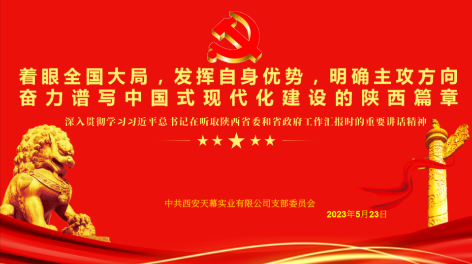 5月23日,西安天幕实业有限公司党支部召开党员大会,传达学习习近平总书记在听取陕西省委和省政府工作汇报时的重要讲话精神。公司党支部书记刘新峰主持会议。公司各单位主要负责人、党员代表参加学习讨论。 会议强调,习近平总书记对陕西各项工作取得的成绩给予肯定,为奋力谱写中国式现代化建设的陕西篇章指明了方向,提供了根本遵循。振奋人心、鼓舞士气,体现了对陕西的巨大关怀和殷切希望。同时为天幕的高质量发展指明了前进方向,提供了奋斗新动力。 会议指出,我们要把学习贯彻习近平总书记重要讲话精神贯穿主题教育和各项工作中,要学深悟透,知行合一。不断提升政治能力、思维能力、实践能力,真正成为政治上的明白人。要发扬理论联系实际的优良学风,及时填知识空白、补素质短板、强能力弱项,不断提高专业化水平。激发党员干部的工作热情,凝聚起担当作为的强大动力,推动公司各项工作取得新突破。 会议要求,公司上下要把学习好、宣传好、贯彻好习近平总书记重要讲话精神与学习贯彻习近平新时代中国特色社会主义思想主题教育作为当前和今后一个时期的头等大事和首要政治任务。各单位、各部门领导要以此次讲话精神为契机,精心安排部署,周密组织实施,对标岗位要求,切实抓好各项工作落地落实。 习近平总书记在听取陕西省委和省政府工作汇报和山西运城考察时发表的重要讲话在我司引发热烈反响。大家一致认为,要以习近平新时代中国特色社会主义思想为指引,完整、准确、全面贯彻新发展理念,紧紧围绕高质量发展这个首要任务,踔厉奋发,勇毅前行,忠实履行党、国家和企业赋予的新时代使命任务,不断在中国幕墙发展和企业发展上取得新成绩,为奋力谱写中国式现代化崭新篇章贡献天幕力量。
