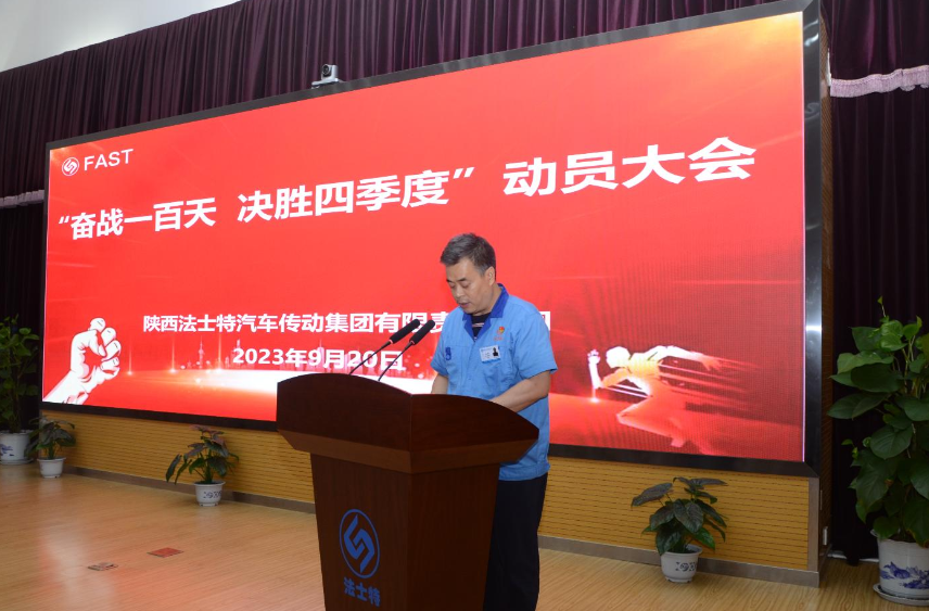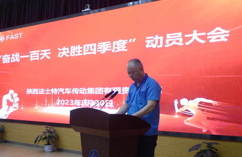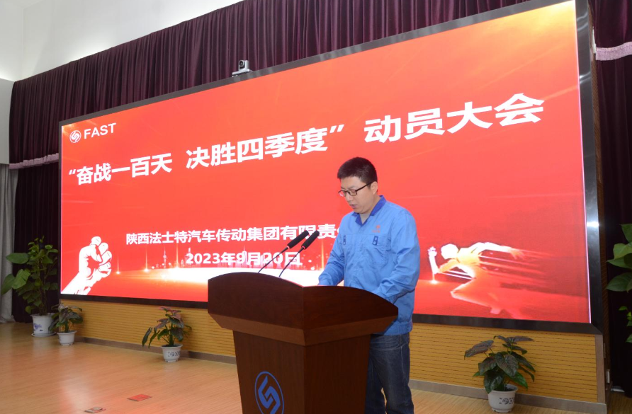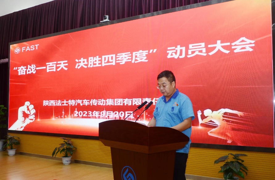 9月20日,法士特“奋战一百天,决胜四季度”动员大会在西安高新厂区召开。法士特集团党委书记、董事长马旭耀出席会议并作动员讲话。会议号召全体员工:统一思想,坚定信心,保持战略定力,增强系统思维,抢抓四季度关键窗口期,全面发力冲刺全年各项目标任务。 马旭耀强调,要以更加坚定的决心,更加扎实的作风,把握市场机遇,勇对挑战;以更加高效的沟通,更加务实的举措,加强协作,形成合力;以更加敏锐的触觉,更加精准的前瞻,适应变化,以变应变;以更加先进的技术,更加科学的管理,创新创造,提质增效;以更加紧迫的意识,更加开放的思维,融入世界,竞合发展。坚决用实招,单单必保,寸土不让,以实际行动向建厂55周年献上一份厚礼。 马旭耀要求广大党员干部,坚持以人为本,切实关心广大员工的工作生活。继续调配一切可用资源,最大化激发员工的战斗力。同时牢固树立安全红线意识,科学高效组织安全生产。 法士特集团党委副书记、副总经理刘义主持会议。公司领导班子成员出席会议,各中层领导干部分别在主分会场参加。 销售总公司、国际业务总部、采购总部、制造总部分别作了表态发言。表示将全力做好组织调配工作,分解目标任务,以决战的姿态、决胜的勇气、必胜的信心,全力完成四季度和全年目标任务,奋力交出企业高质量发展的“期末答卷”。