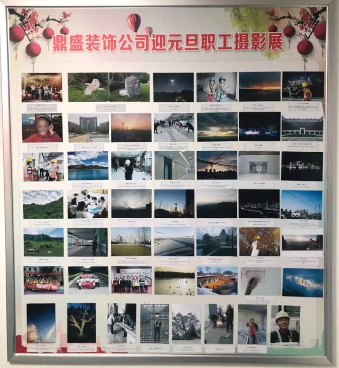 欣赏过春花秀美,感叹过夏花烂漫,崇敬过秋花高洁,品味过冬花傲寒。不知不觉中新的一年即将到来,鼎盛装饰公司工会以“庆元旦·迎新年”为主题开展了职工摄影展活动。 此次摄影展共展出了50张优秀作品,公司职工通过摄影的方式留住工作、生活中精彩的瞬间,让2019年的美好瞬间永远定格。这些照片从不同的角度不同的侧面展现了公司一年来的发展成绩,展现出大家的良好精神风貌。 工作之余大家驻足展示墙前观赏交流,同志们开心的说,这样的活动为大家搭建了一个新的交流平台,让大家在忙碌的工作之余静下心来,寻找2019年印象最深的时刻,跟同志们分享并交流。每一张照片都有着一段动人的经历,每一段讲述都加深着彼此间的交流与理解。 鼎盛装饰公司工会组织摄影展示活动,就是希望让大家奔波的步伐稍作停留,静下心来相互交流、相互欣赏,看看别人发现的美好是不是被自己匆匆的忽略。这些照片反映了公司职工“不忘初心,砥砺前行”的坚定决心,以及在奋进追梦的过程中收获的幸福感、成就感。 鼎盛装饰公司一直秉持“用心塑造装饰臻品”的企业使命,通过工会组织将每位员工紧密联系在一起,凝心聚力,携手共进,用实际行动追逐梦想,创造成就,为2020年开启崭新篇章。 作品展示 驻足观赏交流