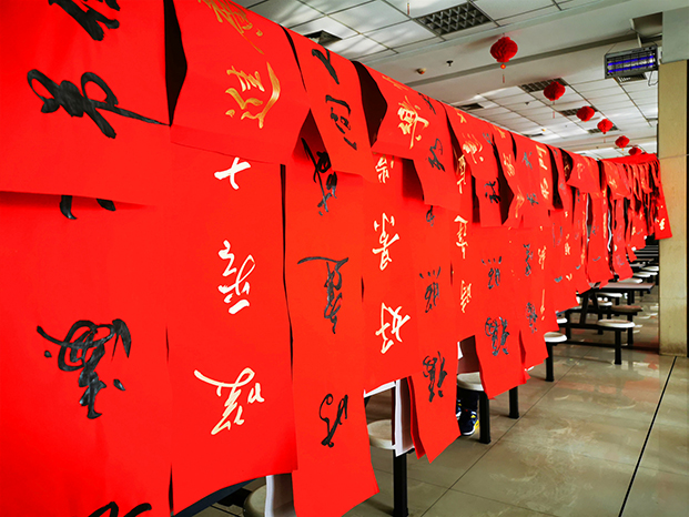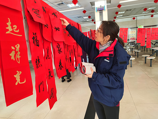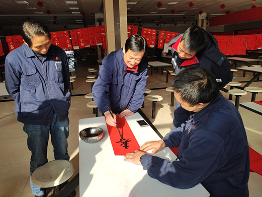 岁末年初,春节将至。为了营造祥和、喜庆的节日氛围,彰显陕焦丰富的文化底蕴,1月14日,由陕焦公司工会主办、炼焦二车间工会承办的 “挥毫泼墨写春意,阖家欢乐迎新春”活动在职工一餐厅、二餐厅热闹举办。 送“福”暖心。早上九点,宽敞明亮的职工餐厅上空已经悬挂起百余幅红对联,在“中国红”得映衬下,年味一下子就浓了。靠窗的角落人头攒动,热闹非凡,一阵阵欢快的笑声吸引力笔者的脚步,走近一看,原来是该公司员工许江文、党晓春、赵景鹏、武瑞利等4名书法爱好者在现场为大家书写对联。 “春临大地百花艳,节至人间万象新”“和顺门第增百福,阖家欢乐纳千祥”……一句句充满祝福的话语和“福”字斗方让前来领对联的职工停足观看,书法大家们笔走龙蛇、笔翰如流,苍劲有力字体是让围观的员工赞不绝口,一副对联刚写好还未等字迹晾干就被人迫不及待的选走了。 “以前过年贴春联都是在街上买,这几年公司免费为我们送,这不仅使中华民族传统文化得到了进一步发扬和传承,更营造了祥和、喜庆的节日氛围。” 员工许钦伟领取到自己心仪的春联后满足的说道。 “ ‘精耕细作抓生产,科学调度稳运行’,看我这幅‘私人订制’的对联贴在调度室门口多切合实际” 生产运行部白海涛拿着自己的专属对身边人联炫耀道。 据了解,此次活动共送出春联700多幅。