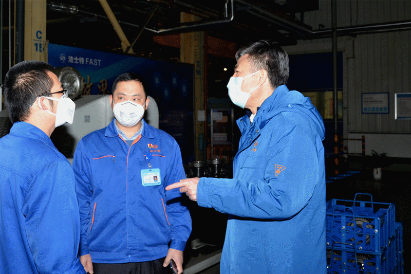 2月10日,法士特集团复工复产工作有序开展,集团公司党委书记、董事长严鉴铂带队深入生产车间、研究院及基层单位,督导检查疫情防控及复工复产工作。