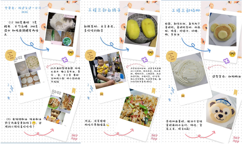 要说“抗疫”期间哪个小技能提升得最快,对于五建的女职工来讲那必然是厨艺啦!做凉皮、炸油条、蒸包子...出锅后再献上重要的餐前礼仪——拿出手机“咔”“咔”“咔”,一道道让人垂涎三尺的佳肴就线上诞生了。