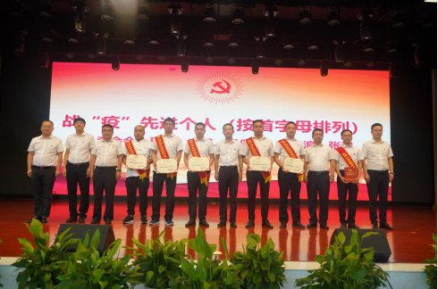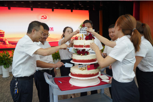 为庆祝中国共产党成立99周年,进一步提高党组织领导力、凝聚力、战斗力,充分激发全体党员干事创业激情,教育引导广大党员践行初心使命,强化责任担当。6月29日,建党节前夕,九建集团党委组织召开了“强化党员意识 筑牢初心使命”主题政治生日会暨战“疫”先进个人、先进集体表彰大会。集团在榆领导班子、副科级及以上党员领导干部、各支部党员代表共70余人参加。 会上,与会人员齐唱陕建司歌、朗诵企业文化,并集中观看了企业宣传片。面对鲜红的党旗,九建集团党委书记、董事长贺国健带领大家重温了入党誓词。在建党99周年来临之际,九建集团在榆领导班子集体朗诵诗歌——《不忘初心 牢记使命》,饱含深情、铿锵有力,表达了对党和国家的忠诚与祝福。 伴随着《不忘初心》音乐声,大家一同切开了饱含祝福与期许的政治生日蛋糕,九建集团领导班子为“寿星”党员们赠送了生日贺卡及生日礼物。在战“疫”先进个人、先进集体表彰环节,大家集中观看了VCR《致敬“疫”路向前的你》,集团纪委书记、工会主席赵福林宣读表彰文件。 李会会等六名战“疫”先进个人,九公司、装饰公司两家战“疫”先进集体以及战“疫”垒土奖获得集体党政办公室现场接受表彰。与此同时,会议还进行了“奋进七十载 砥砺新征程”创意微党课作品现场评比,最终机关第一党支部、二公司党支部、三馆项目党支部分获一、二、三等奖。 集团党委书记、董事长贺国健在总结讲话中指出,在中国共产党成立99周年之际,集团党委全体党员领导干部共庆党的生日,表彰战“疫”先进,既是鼓励大家学习先锋榜样,也是希望大家永葆初心、使命。他强调,当前,正是企业发展爬坡过坎的关键时期,生产经营是企业高质量发展的重中之重,广大党员领导干部要从政治高度抓好生产经营工作,以行动为出发点,以实现高质量发展再上新台阶目标为落脚点,真正发挥党员先锋模范作用,干在实处、走在前列,真拼实创、幸福奋斗! 他要求,广大党员领导干部一是要在思想上永远保持先进性,不断加强理论学习,坚持用党的创新理论成果武装头脑,指导实践、推动工作;二是在行动上永远保持积极性,时刻牢记肩上的职责,主动把担子扛起来,把职责真正履行好;三是在品质上永远保持纯洁性,时刻守住初心,守住底线,把心思全部用在干实事上,用在为职工群众谋福祉上;四是在工作和生活中永远保持初心,经常进行思想政治体检,把“不忘初心、牢记使命”作为必修课、常修课,不断叩问初心、守护初心,不断坚守使命、担当使命,始终做到初心如磐、使命在肩。 活动最后,与会人员进行了合影留念。