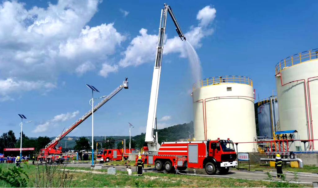 为认真贯彻落实“安全第一、预防为主、综合治理”的安全生产方针,提高突发事件的应急处置能力,进一步加强企地消防救援队伍的联合作战实力,7月2日,延安市消防救援支队第二战区在陕焦公司黄陵煤化工公司专职消防队配合下,开展了综合罐区1#粗苯罐泄漏着火应急演练,这次演练是该公司建厂以来规模最大、参与面最广的一次实战演练。 演练模拟“综合罐区1#粗苯储罐出口管道软连接破裂,发生粗苯泄漏,在抢修的过程中发生着火”,经该公司专职消防队员初步处置后,立即请求地方消防大队支援。延安市消防救援支队第二战区接到报警后,紧急联系洛川、黄陵、富县、黄龙、宜川5县及黄陵矿业公司消防队伍,迅速赶赴事故现场开展应急救援工作。 此次演练第二战区消防救援队伍共出动各式消防车8辆,消防官兵49人,圆满完成演练方案预定项目。通过演练,不仅有效检验了该公司生产岗位应急疏散技能和专职消防队针对火灾事故的初步处置能力,还检验了事故发生状态下企业与地方消防救援大队的联系配合能力,为该公司今后生产现场消防应急救援的企地有效联动打下坚实基础。 演练结束后延安市消防救援支队第二战区对本次黄陵煤化工公司密切配合表示感谢,并表示今后将进一步加强保持与黄陵煤化工公司密切联系沟通,不断加强消防安全管理与应急联动演练及处置工作,为公司安全生产提供有力保障,最大限度地防止事故发生,保证战区的社会稳定与安全。