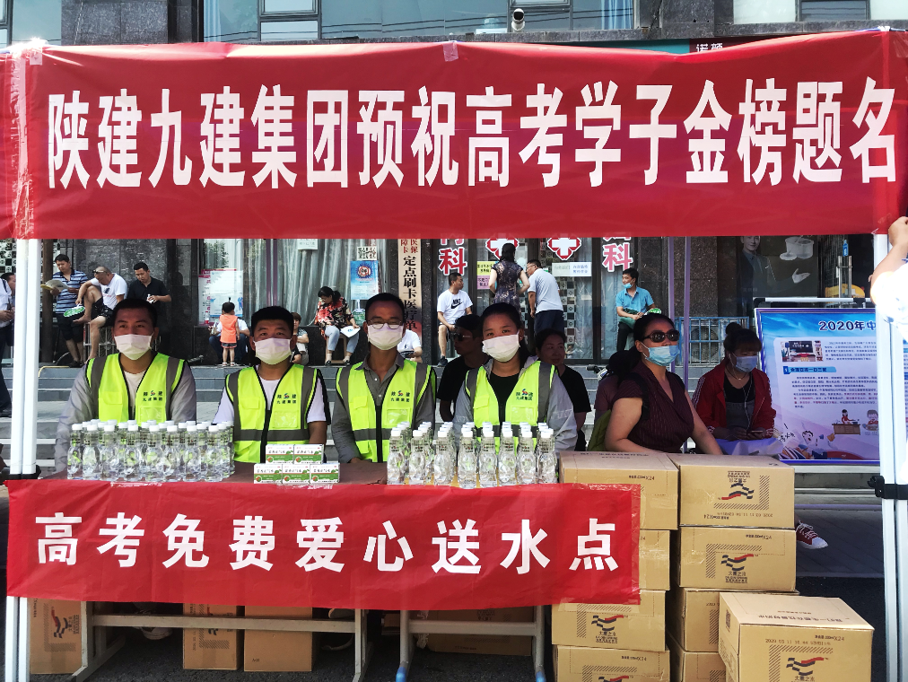 7月7日,又是一年高考季。因为疫情,今年的高考比往年迟了一个月,但对参考的学子来说,人生命运的这场大戏终将开锣。 一大早,10余名来自集团府谷新区尚品君悦项目的职工主动加入爱心送考行列,驾驶自己的车辆义务接送考生,所有车辆统一贴上了陕建九建“爱心送考”标志,成为街道上一条靓丽的风景线。在府谷县第二初级中学考点设置爱心服务站,志愿者们准备了藿香正气水、矿泉水、考试用具等爱心物资,为考生们提供力所能及的帮助。 与此同时,在榆林,集团一公司志愿者们也提前准备好送考车辆,在约定时间内赶到考生指定地点,确保考生安全及时到达考场。在榆林七中考点门前设立了“高考加油站”,志愿者们为考生提供矿泉水、纸巾、2B铅笔、削笔刀、橡皮、黑色签字笔等用品,以备考生不时之需。志愿者们顶着炎炎烈日,紧张有序地忙碌着,在场外为考生“加油”,为陪考家长提供遮阳篷,陪他们聊天,缓解他们的焦急情绪。 在高科检测公司“高考志愿者服务点”,志愿者们为考生和家长提供临时休息点。“祝你金榜题名,祝你高考如愿……”等一段段简短的寄语,饱含了志愿者们对考生的祝福。"谢谢你们!你们为考生和家长考虑的很周到,很贴心,社会需要你们这样有担当的国企,为你们点赞!”一位家长热情的说道。 烈日炎炎的午后,集团安装公司爱心助考志愿者也到达榆林市第一中学考点,为广大考生送去一份清凉、一份鼓励、一份安心,收获了大批考生及家长的笑脸和感谢。 六百多公里之外的西安,在沣东新城第二初级中学考点门口,集团五公司西部生命科学园建设项目组织管理人员开展“助力高考,爱心送考,免费送水”活动,让考生及家长在炎炎夏日里拥有一个凉爽、舒畅的心情,也为考生们鼓劲加油,增添信心和力量! 在咸阳渭城区渭城中学考点,一排排整齐有序的出租车、120急救车待命校门口,随时等待处理突发事件。带着红帽子、身穿志愿者服装的集团二公司的青年们格外亮眼,他们顶着炎炎日头,为结束上半场大考的莘莘学子、认真执勤的交警和出租车司机发放饮用水以及藿香正气水等物资。“这个春天对于我来说很难忘,高考延期也使我们成为最特殊的一届高考生,谢谢你们这些爱心企业一直关注着我们。”一名考生这样说道。 有人说,高考是一个人的战斗,其实并非如此。 高考,是无数人的梦想与爱的凝聚,作为榆林市总部经济代表企业,陕建九建集团始终以产品质量赢得业主心,以诚信经营赢得客户心,以人为本赢得职工心,以积极履行社会责任赢得社会心! 今天,集团再次用实际行动为广大高考学子保驾护航,祝愿所有考生乘风破浪金榜题名!