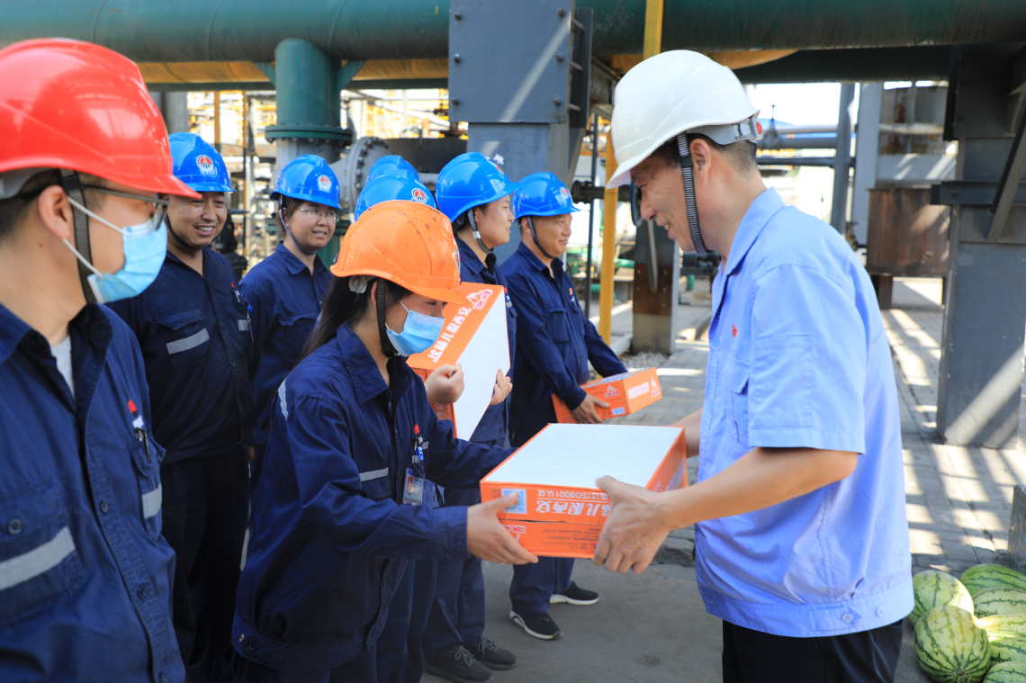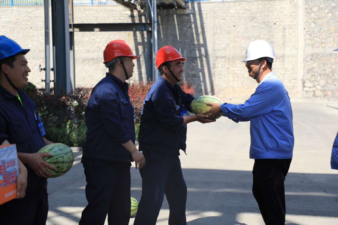 小署已过,伏天即来。为做好夏季防暑降温工作,向奋战在基层一线的职工表达公司的关怀,传递公司对员工的关爱,7月7日下午,陕焦公司在家领导班子成员深入六车间三中心,对高温天气下依旧坚守在工作岗位上的员工进行了慰问。 “最近工作怎么样?有什么困难吗?”“天气越来越热了,大家在干好工作的同时也一定要照顾好自己的身体。”慰问一行每到一处,都详细询问了基层员工们近期的工作情况,嘱托大家在夏季工作过程中一定要注意防暑,提高安全防范意识,保护好自身安全,感谢大家在酷暑难耐的高温下依旧能坚守在各自的工作岗位上。 “感谢领导的关心,工作这一切都好,请领导放心,请公司放心!”员工们纷纷感谢公司为大家带来这么多的防暑用品,并一致表示不管天气有多么炎热,一定会一如既往地坚守在工作岗位上,做好安全生产工作,为公司“战酷暑 抓三防 稳产高产大干一百天”目标的完成做出自己的贡献。 本次“送清凉”活动为职工送去了西瓜、冰糖、菊花、酸梅粉及饮料等清凉用品。据悉,自6月中旬以来,该公司各基层工会也纷纷开展了“送清凉”活动,极大的鼓舞了一线员工的干劲。