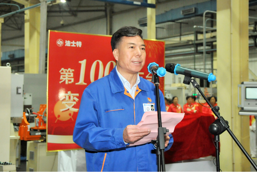 科技创新引领高质量发展 智行品牌领跑产业链升级 热烈庆祝法士特第1000万台变速器顺利下线 2020年9月28日,法士特第1000万台变速器在西安高新厂区智能化生产线顺利下线。陕西省国资委党委委员、副主任杨爱民,法士特集团党委书记、董事长严鉴铂等出席下线仪式。 在奋进的乐曲声和高昂的气氛中,陕西省国资委副主任杨爱民,法士特集团党委书记、董事长严鉴铂共同为法士特第1000万台变速器披红挂花。 陕西省国资委党委委员、副主任杨爱民 杨爱民称赞法士特第1000万台变速器顺利下线对推进创新驱动战略、践行高质量发展和推动经济稳增长的贡献,充分肯定了法士特在深化国有企业改革先行者和发挥国有企业主力军作用。希望法士特做好“六稳”工作,落实“六保”任务,认真践行国企使命,不断提升自主创新能力,加速培育创新动能,加快企业转型升级,勇作我省全面深化改革的排头兵,在新一轮科技革命和产业变革中勇立潮头,为奋力谱写我省新时代追赶超越新篇章贡献国企力量。 法士特集团党委书记、董事长严鉴铂 严鉴铂指出,法士特第1000万台变速器下线,既是企业完美收官“十三五”、向喜迎建国71周年献上的一份厚礼,更是我们再起跑、再创新、再突破的新起点。它标志着法士特变速器市场销量从百万量级向千万量级跃升,这一辉煌壮举必将载入中国汽车工业发展史册。 严鉴铂强调,从去年12月份第900万台变速器下线到今天第1000万台下线,我们只用了短短九个多月时间,这不仅是量的积累,更是质的飞跃,我们在应对挑战中将不可能变为可能,创造了行业奇迹。 严鉴铂号召全体员工危机长存,顺应行业“新四化”发展趋势,主动拥抱“数字化”经济,为奋力谱写陕西新时代追赶超越新篇章贡献法士特力量。 今天下线的第1000万台变速器,是企业自主研发的最新一代法士特▪智行16挡AMT变速器,代表着企业最新科技创新成果和领先智造水平,该款产品彻底打破了国外先进技术壁垒,填补了国内集成化AMT产品空白,已成为国内各大主机厂高端国六车型标配,具有广阔的市场发展前景,为企业高质量发展提供了强劲动力。 马旭耀总经理主持下线仪式。法士特领导班子成员、全体中层干部、研发人员及员工代表共计200余人参加。
