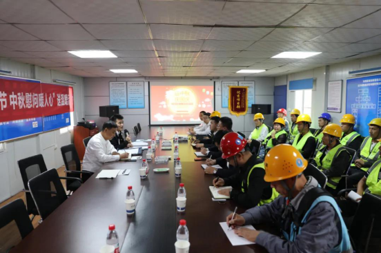9月28日下午,集团工会主席艾青春、团委书记代百冰一行来到集团第十直属项目部沣西新城创新港幼儿园、小学项目慰问一线管理人员和农民工兄弟,为大家送上了月饼和节日的祝福。 会上,集团第十直属项目部党支部书记、经理师全江,第三工程公司副总经理、工会主席牛佳菌先后从经济技术指标完成情况、工程进度、人才培养、后勤保障、疫情防控等方面进行了汇报,用行动凸显了防控疫情,紧抓生产,不怕困难,确保按期交工的“二建铁军”精神。 随后,组织观看了以三公司党支部书记、总经理侯攀国为原型的劳模微电影《24小时》,五名员工代表分享了观看感受,大家纷纷将继续发扬“困难面前有二建,二建面前无困难”的大无畏精神,为集团发展贡献力量。 集团工会主席艾青春在讲话中,首先转达了集团党委书记、董事长刘新潮对大家辛苦付出的肯定和问候。他代表集团对项目管理人员中秋、国庆坚守岗位的奉献精神表示衷心的感谢,对大家不怕苦、不怕累,迎难而上的工作热情给予肯定!随后,为一线管理人员和农民工宣讲了企业文化,从企业简介、历史变革、企业资质、文化理念、企业品牌、人才建设、文艺活动、社会责任等方面深入浅出的讲述了一代又一代二建人接力奋斗的生动历程。 最后,他对三公司和十直部的发展提出了三点希望:一是目标引领快发展;二是抓好党建上台阶;三是真抓实干求实效。在勇挑重担中成就事业,在砥砺奋进中创造业绩,在追赶超越中完成指标,为推进陕建二建集团快速发展和陕建集团整体上市贡献更大的力量。
