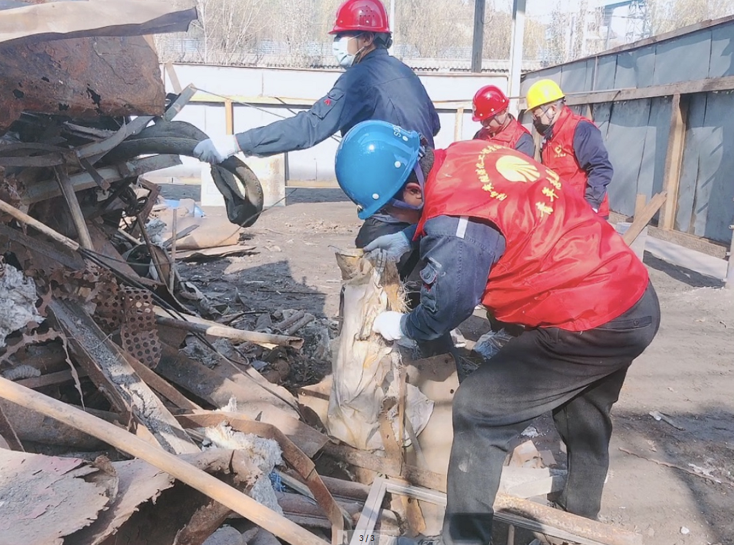 “‘百日安全’期间,我们要紧盯安全目标,高质量完成生产经营工作。党支部标准化建设的目就是要融入中心工作,服务生产一线,党员更要冲锋在前面发挥作用,做好表率,目前车间1#脱硫塔塔内积灰严重,我建议党员突击队出征战斗,攻坚克难清理脱硫塔积灰” “党员要发挥不怕脏、不怕累、勤俭持家的优良传统,车间事故渣场,废料堆有一些塑料袋、塑料管,我们去把它们从里面清理出来,一些下脚料钢材、钢板也可以回收……”10月26日,陕焦公司黄陵煤化工水汽车间党支部党员大会讨论异常“热闹”。 在10余名党员的讨论声中,该党支部最终决定10月份主题党日活动围绕“融入中心,服务生产,党员突击助安全”主题,攻克两项难题:整理渣场废料堆与清理1#脱硫塔积灰。 27日上午10点,12名党员和管理人员组成的突击队进驻现场。大家穿上志愿者“红战袍”,扛起党旗,迈着铿锵的步伐,进驻第一块阵地渣场废料堆。 “大家在清理过程中一定要注意安全,手套、安全帽一定要规范佩戴,要仔细脚下的杂物,女生的鞋带要系的结实一点,避免鞋带松散绊倒。”清理工作开始前,该车间党支部书记张喜林着重强调了安全。 废料堆主要是各车间堆放的一些废旧下脚料钢材,在日积月累下已经逐渐形成了一个小山堆。“今天,我们也要学一下‘愚公移山’争取把这座小山也搬走,哈哈……”大家一边打着趣,一边投入到清理工作中。只见党员们把“小山堆”里面的废钢板、下脚料挑拣出来,便于修旧利废使用;将风化塑料管、塑料袋等不可重复使用的杂物清理至垃圾堆,并将其余废料进行归置整理。 在第二阵地1#脱硫塔。张喜林一马当先,率先垂范,“我和刘鑫先进去,把电镐递给我们,我们先松灰;彭耿、杨阳你们铲运,20分钟轮换”。笔者看着一个个党员进入受限密闭的塔内,他们忍受着难闻的气味,挥动着手中的工具,一铲一铲的清理着积灰,这画面足以胜过千言万语。“身为党员,我们要对得起心中的信仰,要无愧于胸前的党徽,更要发扬服务中心工作的精神,用自己的绵薄之力为公司降本增效,节能降耗添砖加瓦。”党员有感而发。 融入中心助安保,发挥合力谋发展。本次主题活动共计清理脱硫塔积灰2吨,整理出可回收钢材、下脚料10余块,清理杂物2塑料袋。2个小时的活动只是个缩影,像这样全力以赴的时刻和人在陕焦公司黄陵煤化工还有很多。