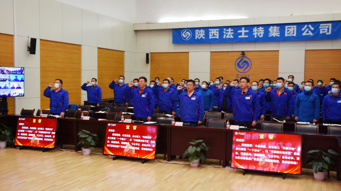 1月19日上午,法士特召开2021年“风暴行动”——“一个核心”启动暨誓师(视频)大会。法士特集团党委书记、董事长严鉴铂出席大会并作指导讲话。 严鉴铂发表了题为《击鼓奋进 誓夺智能化产品市场开拓新胜利》的讲话,深刻阐述了“全面提升智能化产品综合竞争力”的重大意义。 严鉴铂指出,智能化产品关系市场技术走向、企业生死存亡和十四五战略能否实现。我们必须顺应汽车行业“电动化、网联化、智能化、共享化”新四化发展要求,加快拓展完善智能化产品系列,全面加速智能化产品综合竞争力,打造公司竞争新优势、推动公司向高端持续迈进,为“十四五”开好头、起好步。 严鉴铂要求,研发系统以“要做就做最好”的志气,咬牙攻关。产供系统以“一切行动听指挥”的胆气,聚集资源。销售系统以“狭路相逢勇者胜”的豪气,拼抢市场。突击队要以“誓在必得”的志气,以“破釜沉舟”的勇气,以“无坚不摧”的锐气,誓夺智能化产品市场拓展新胜利!以更加优异的成绩迎接“十四五”开门红、献礼建党100周年! 马旭耀总经理为突击队授旗。刘义副总经理介绍“一个核心”活动方案。相关项目团队分别与公司签下军令状。 赵艳文副总经理参加,全体与会人员宣誓。