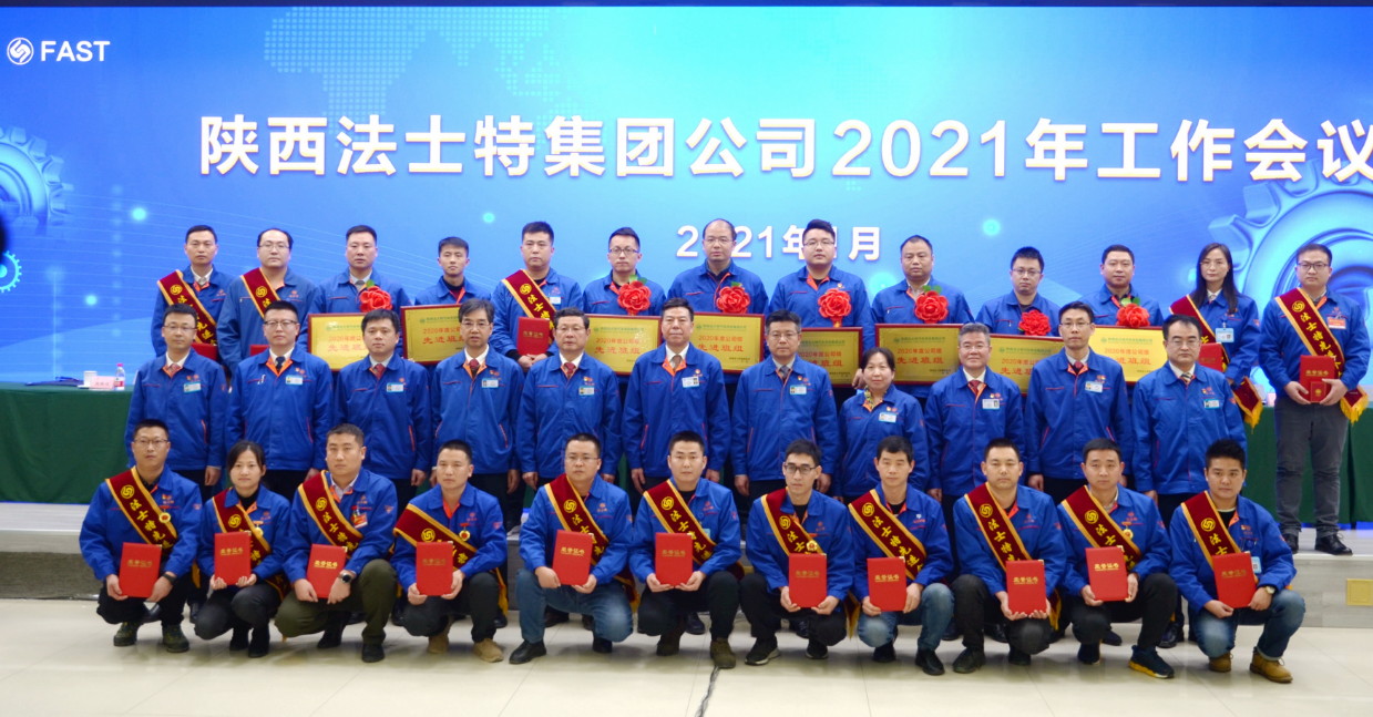严鉴铂董事长向大会作工作报告。44名公司级先进个人和20个公司级先进班组受到表彰。 1月24日上午,法士特集团召开2021年工作(视频)会议,全面总结回顾2020年工作和“十三五”成就,明确了2021年生产经营目标任务,为企业谋篇“十四五”指明了前进方向。 解放思想聚力双高 圆满收官十三五 对标国际迈向高端 奋力开创新局面 严鉴铂指出,2020年,法士特产销再创历史新纪录,全年累计销售变速器总成118万台,同比增长18%;实现销售收入249亿,同比增长24%。变速器产销累计双超千万台,成为中国重型变速器行业发展一大创举。法士特各项经营指标连续18年名列全国齿轮行业第一,重型汽车变速器年产销量连续15年稳居世界第一。 严鉴铂强调,2021年是中国共产党成立100周年,是企业“解放思想年”活动收官之年。全体员工要认真学习贯彻党的十九届五中全会精神和习近平总书记来陕考察重要讲话精神,主动践行我省追赶超越目标,深入开展“风暴行动”和“双对标”活动,咬定青山不放松,脚踏实地加油干,奋力谱写新时代追赶超越新篇章,以实际行动为“十四五”起好步、开新局。 严鉴铂董事长等公司领导为受表彰的个人和集体代表颁发荣誉证书和奖牌。 马旭耀总经理主持会议,陈兵副书记宣读相关表彰决定。 公司领导班子成员,全体中层干部和工会委员会委员、职工及会员代表参加了大会。