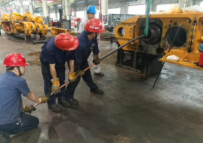 安全一直是生产车间里老生常谈的话题,为继续保持车间无安全环保事故发生的优异成绩,近日,陕北矿业神南产业发展公司机电设备维修中心采掘车间“软硬兼施”,严格执行各岗位安全生产责任制,多举措助力安全稳步向前。 把紧意识关 提升安全“软”实力 安全意识的养成是车间生产工作行稳致远的前提。基于此,车间从“提高意识,加强宣传”入手,首先利用早会、班前会、党员大会等渠道,横向到边,纵向到底的加强安全意识的宣贯力度,对安全意识麻木大意者,进行单独的谈心谈话,从根源上切除思想认识不到位的“毒瘤”,从而让车间员工形成安全生产马虎不得的警惕意识。 此外,严格落实安全生产责任制,将安全生产目标责任细化分解,自上而下落实到人,进行安全生产无缝隙的管理,让这把“安全锁”常住作业人员心间。 自制新工装 做好安全“硬”防护 机电设备维修中心采掘车间在安装某矿艾柯夫采煤机牵引箱行星机构时,需要使用叉车将行星架缓慢推进牵引箱中,或是利用起重机将行星架吊起,再由多人协调配合,使用方钢调整太阳轮与行星架上的行星齿轮的孔中心距。此作业过程中由于无法保证安装的平稳性,需要员工多次对准找正,这就产生了配件砸落地面,磕损配件甚至砸伤作业人员的重大安全隐患。为解决此隐患,保障员工的高效安全工作,车间经理、班组长及其他作业者通过多轮探讨、多方请教、多次试验,最终自主设计制作了EKF牵引箱行星机构安装装置。 通过此工装,作业人员只需将行星架放至于制作好的装置上,利用叉车将行星架抬至设备牵引箱行星机构处,左右调节孔中心距,即可完成EKF牵引箱行星机构的安装。 据了解,此装置是员工在作业过程中为解决实际生产难题所创,是车间安全生产的“硬形象”。而以其为代表的系列创新项目折射出车间员工安全意识与日俱增,展示了车间“人人为安全考虑”的主人翁意识。 安全生产没有完成时,一直在路上。一元复始,机电设备维修中心采掘车间“软硬兼施”不断学安全、促安全、保安全,助推公司安全形势持续向好发展。