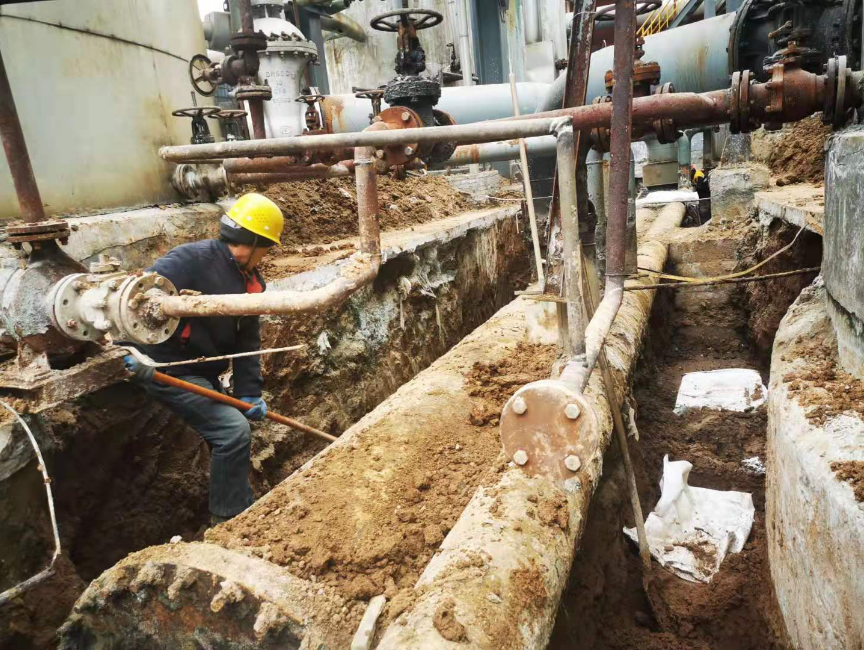 “报告调度,AH22泵已正常运行,循环泵前管道正常投运,目前一切运行正常!”随着对讲机里传来的汇报,陕焦公司计划30天完成的脱硫溶液管道更换作业提前一个星期完成。 脱硫岗位是煤气净化工序,其主要是去除煤气中的硫化氢和氰化氢,生产硫磺产品,并为甲醇输送合格煤气。近日,由于溶液冲刷和腐蚀,脱硫溶液循环泵进口管道管壁变薄并出现多处漏点,导致脱硫液泄漏,影响正常生产运行。 陕焦公司立即召集机动能源部、生产运行部、机电仪维修中心、采购二部、化产二车间等相关部门召开紧急会议,决定马上制作临时管道和循环泵连接,把原来的旧管道完全切换出来,确保系统正常运行。会议结束后,机电仪维修中心按照既定方案,分组进行泵房打孔、临时管线预制、循环槽排液及管道连接等作业。经过维修人员3天的全力奋战,临时管道制作成功并投入使用。 临时管道的投用给脱硫管道更换检修节省了时间。“这次我们要更换的溶液管道主要有DN900管道50米、DN600管道60米、DN200管道50米,加之还有开挖地面,所以任务重,时间急,各横大班班长一定要落实好各项安全措施,组织好各项检修工作,要在关键时刻冲上去!”该车间党支部书记、主任焦军社在安排部署会上多次强调。按照检修方案,明确安全注意事项后,岗位人员各负其责,积极投入到管道更换战斗中。 脱硫人员首先打开出口阀门进行循环槽排液,机电仪检修人员则兵分两组,分别进行溶液管线预制及泵进口管道连接。只见检修人员忙碌的身影在现场来回穿梭,他们有的趴在管道下,手拿焊枪一点一点的焊接,有的则穿着雨靴,站在泥泞的地坑里对问题部件进行拆卸......虽然天气异常寒冷,可丝毫没有影响工作进度。他们个个动作娴熟,配合默契,各项工作紧张有序的进行着。 此次抢修不仅完成了脱硫溶液管道及3个大阀门的更换,而且对管道跑冒滴漏都一次性进行了处理,大大提高了设备运行效率。从目前的运行效果看,各项工艺指标均达到了标准要求。