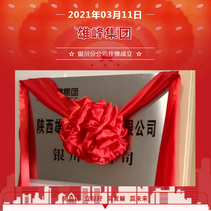 3月11日,陕西雄峰实业集团有限公司银川分公司在银川市兴庆区正式挂牌成立。我集团总经理刘丽恒、执行副总刘博、常务副总卜红娟、监察部杨文娟等出席参加了银川分公司挂牌仪式。 挂牌仪式上,我集团执行副总刘博对银川分公司的市场规划与业务拓展给予了明确的方向和悉心的指导。 ▲雄峰集团执行副总刘博致辞 我集团总经理刘丽恒向银川分公司负责人房立龙表示了衷心的祝贺,并对银川分公司新团队信心满满的工作热情给予了高度的赞许!刘总讲到:银川分公司的正式启动,成功迈出了雄峰省外设立分公司的第一步,开启了省外市场拓展的新篇章!雄峰团队将始终坚持“树品牌、立标杆,同发展、赢未来”的企业宗旨,逐步启动雄峰的第二个、第三个......分公司。2021年雄峰定能实现省外分公司的遍地开花。我们将会将雄峰优质的产品带到中国更多的城市,将雄峰尊贵的服务带给更多的客户,为实现雄峰成为行业“小巨人”的目标又迈进了坚实的一步! ▲雄峰集团总经理刘丽恒致辞 银川分公司是陕西雄峰实业集团有限公司省外挂牌成立的第一家分公司,它的成立在雄峰开疆拓土的战略布局中具有里程碑意义,同时也为雄峰实现“打造中国强企,铸就百年雄峰”的伟大愿景奠定了夯实的基础。